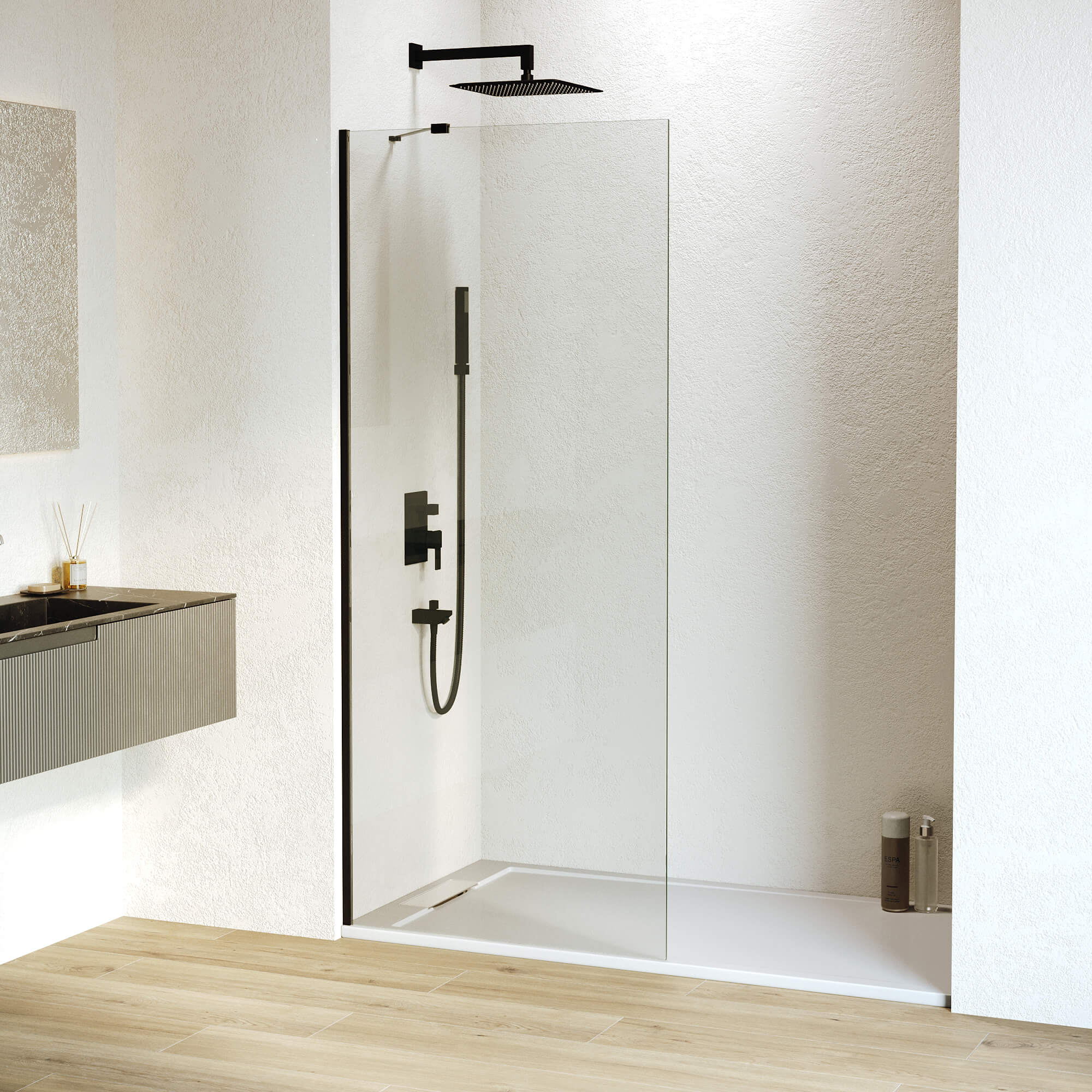 Высота перегородки составляет 195 см, что позволяет использовать ее в различных типах помещений. Благодаря классу герметичности 3, зона душа остается сухой и защищенной от воды, что является очень важным для комфортного использования.