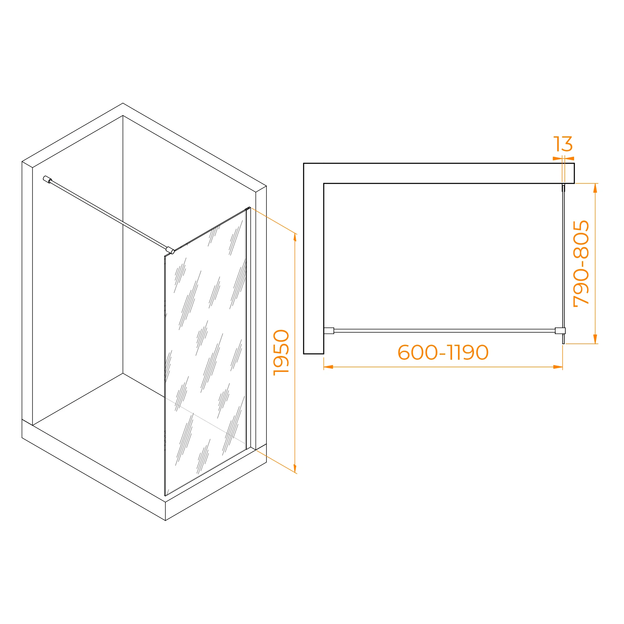 Высота перегородки составляет 195 см, что позволяет использовать ее в различных типах помещений. Благодаря классу герметичности 3, зона душа остается сухой и защищенной от воды, что является очень важным для комфортного использования.