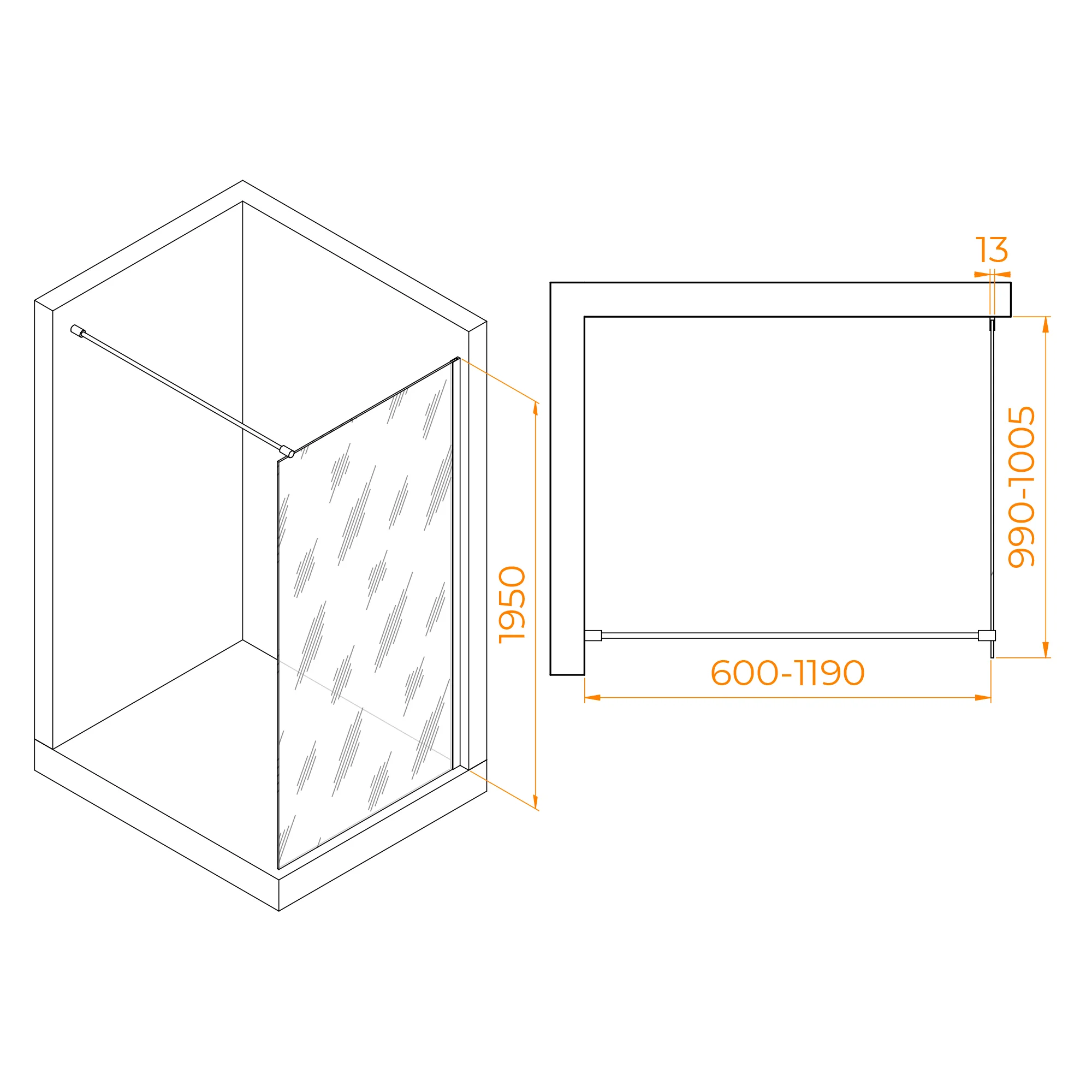 Высота перегородки составляет 195 см, что позволяет использовать ее в различных типах помещений. Благодаря классу герметичности 3, зона душа остается сухой и защищенной от воды, что является очень важным для комфортного использования.