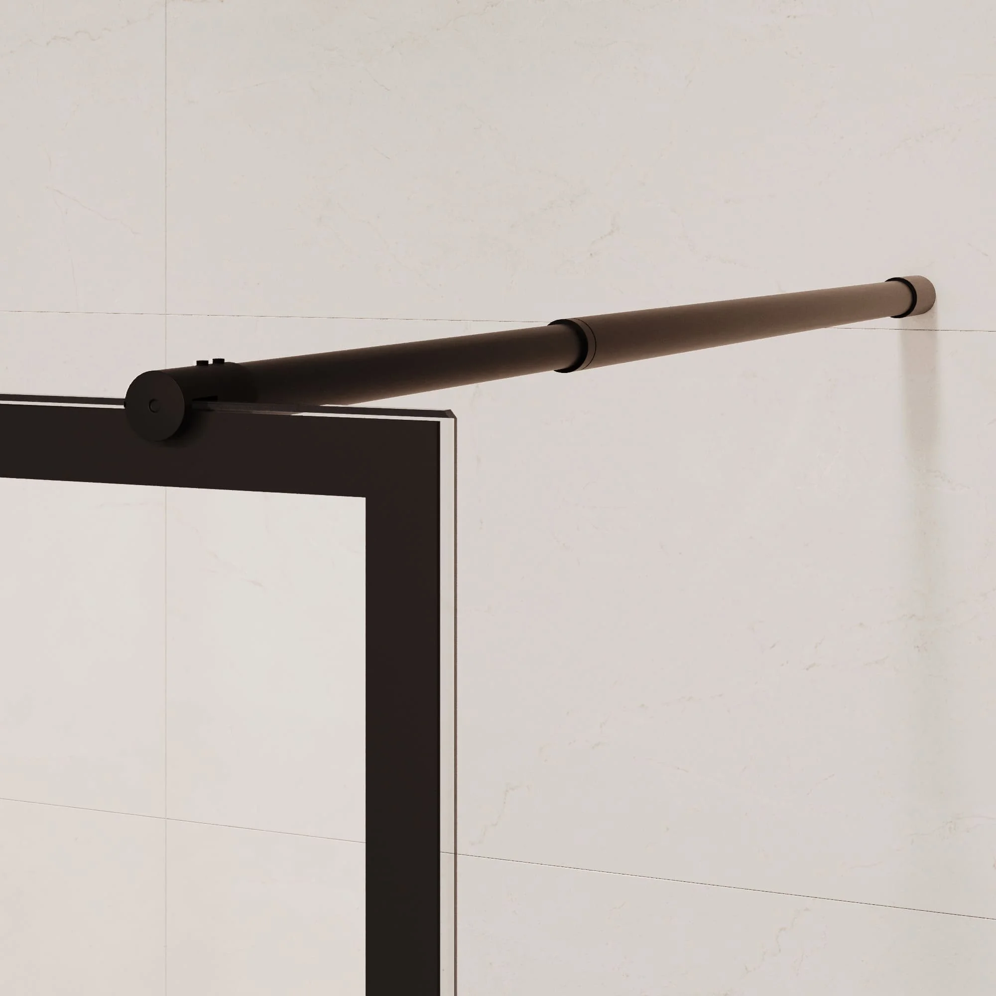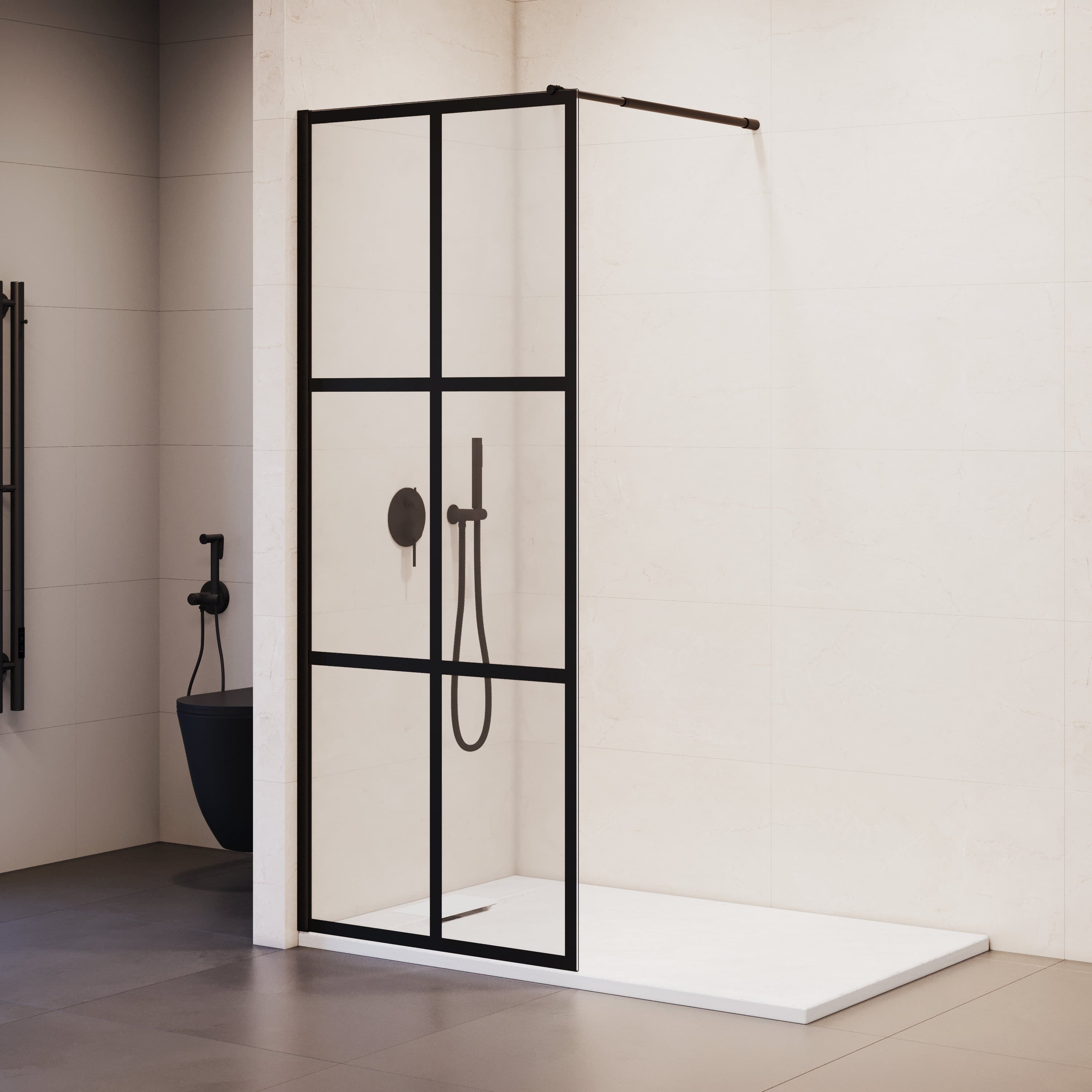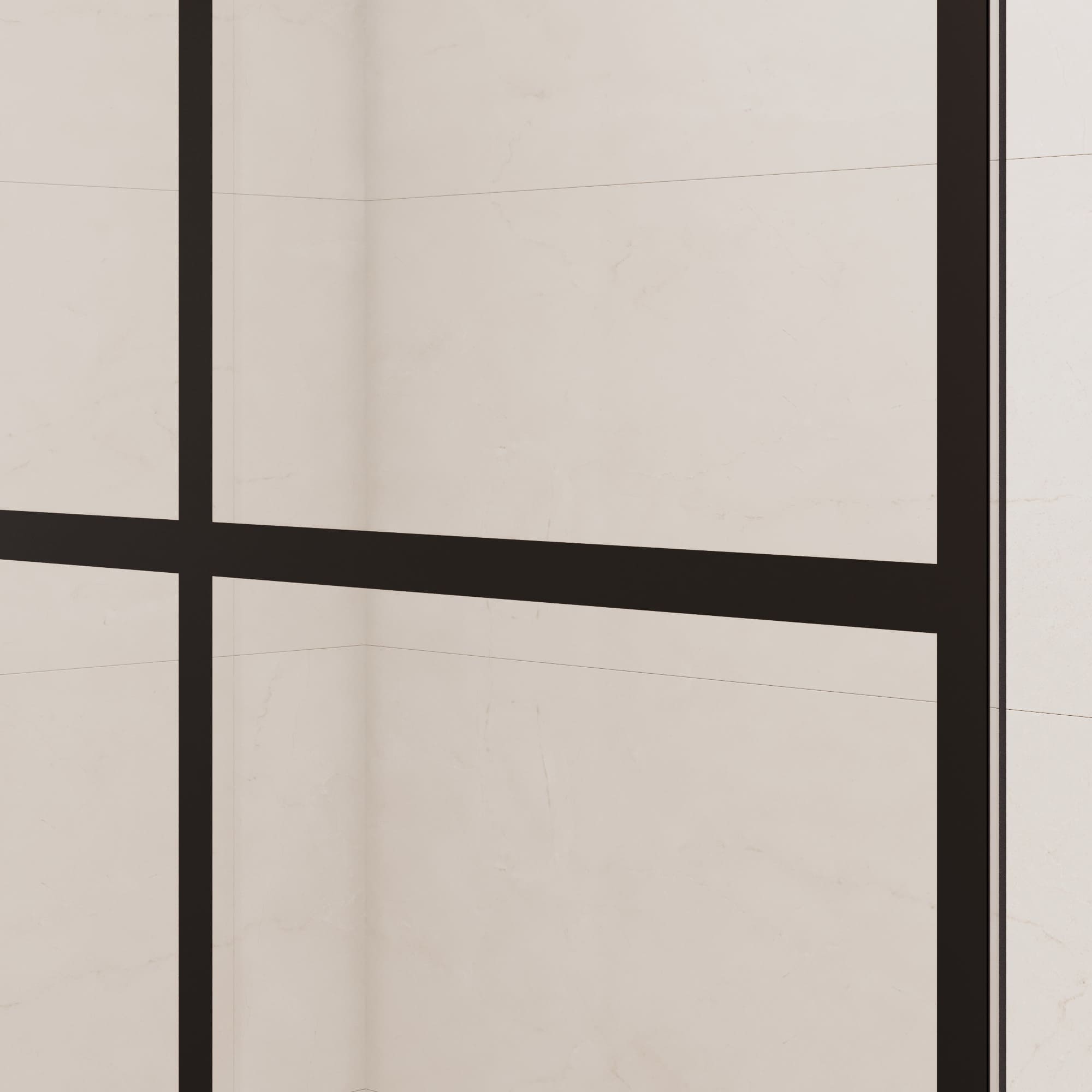 Толщина стекла составляет 8 мм, что обеспечивает высокую прочность и гарантирует безопасность использования. Исполнение стекла прозрачное с рисунком, который нанесён методом шелкографии. Пристенный профиль перегородки выполнен из качественного анодированного алюминия и имеет черный цвет, что отлично сочетается с большинством интерьеров.