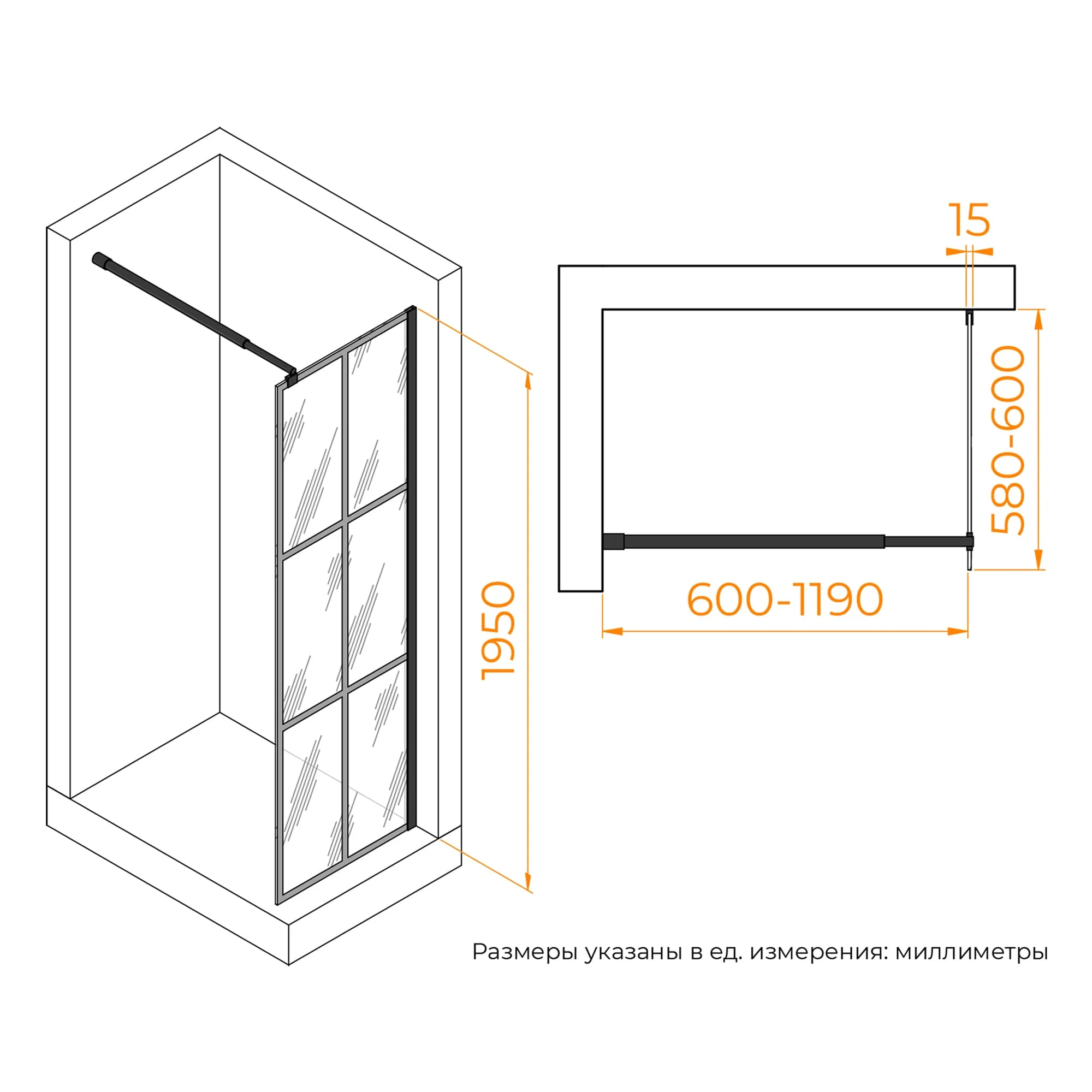 Перегородка имеет высоту 195 см, что обеспечивает комфортное использование душа даже для людей высокого роста. Также предусмотрены все необходимые элементы для создания герметичной конструкции. Эта перегородка относится к 3 классу герметичности, что означает полную защиту от протекания воды за ее пределы.