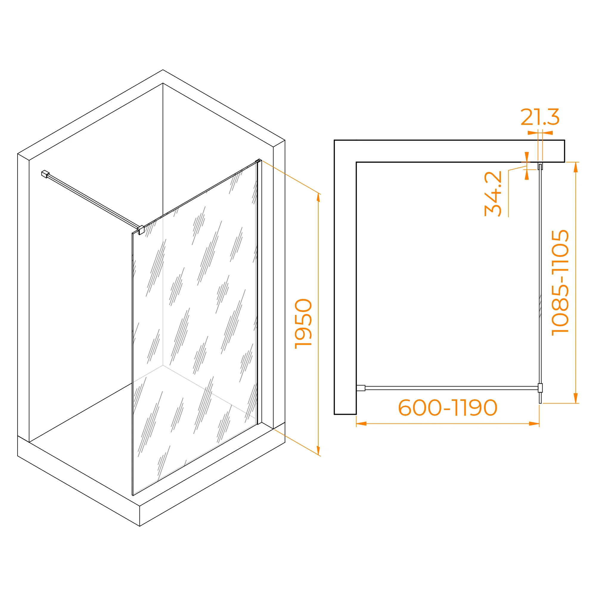Перегородка изготовлена из закаленного стекла толщиной 10 мм, что обеспечивает надежность и долговечность изделия. Прозрачное стекло позволяет вам наслаждаться свежими ощущениями во время принятия душа, создавая визуальное пространство и эффект простора в ванной комнате. Благодаря анодированному алюминиевому профилю цвета хром, перегородка идеально сочетается со стилем вашей ванной комнаты и добавляет элегантность и современность в интерьер.