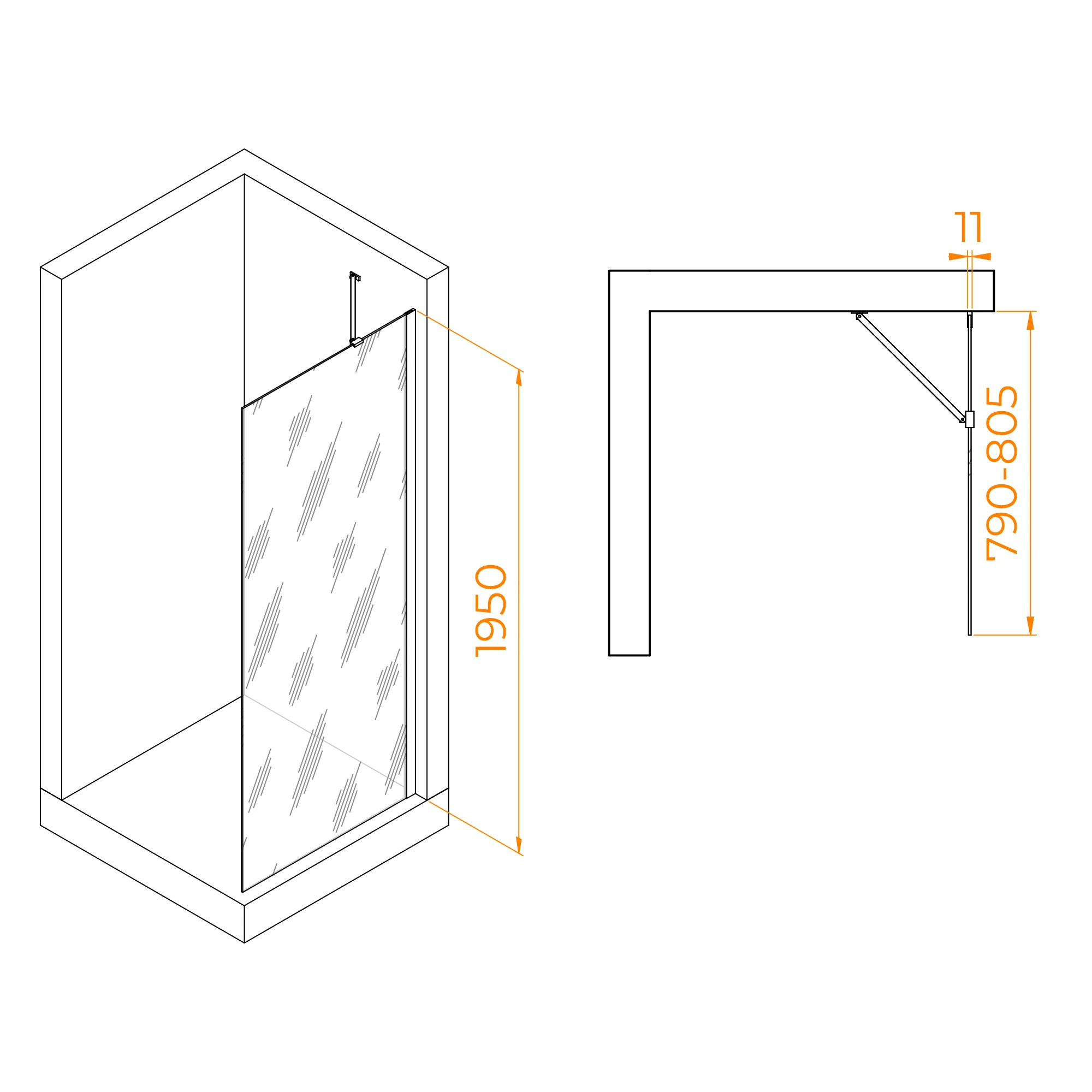 Высота перегородки составляет 195 см, что позволяет использовать данную конструкцию для большинства размеров ванной комнаты. Перегородка имеет класс герметичности 3, что обеспечивает полную защиту от проникновения воды.