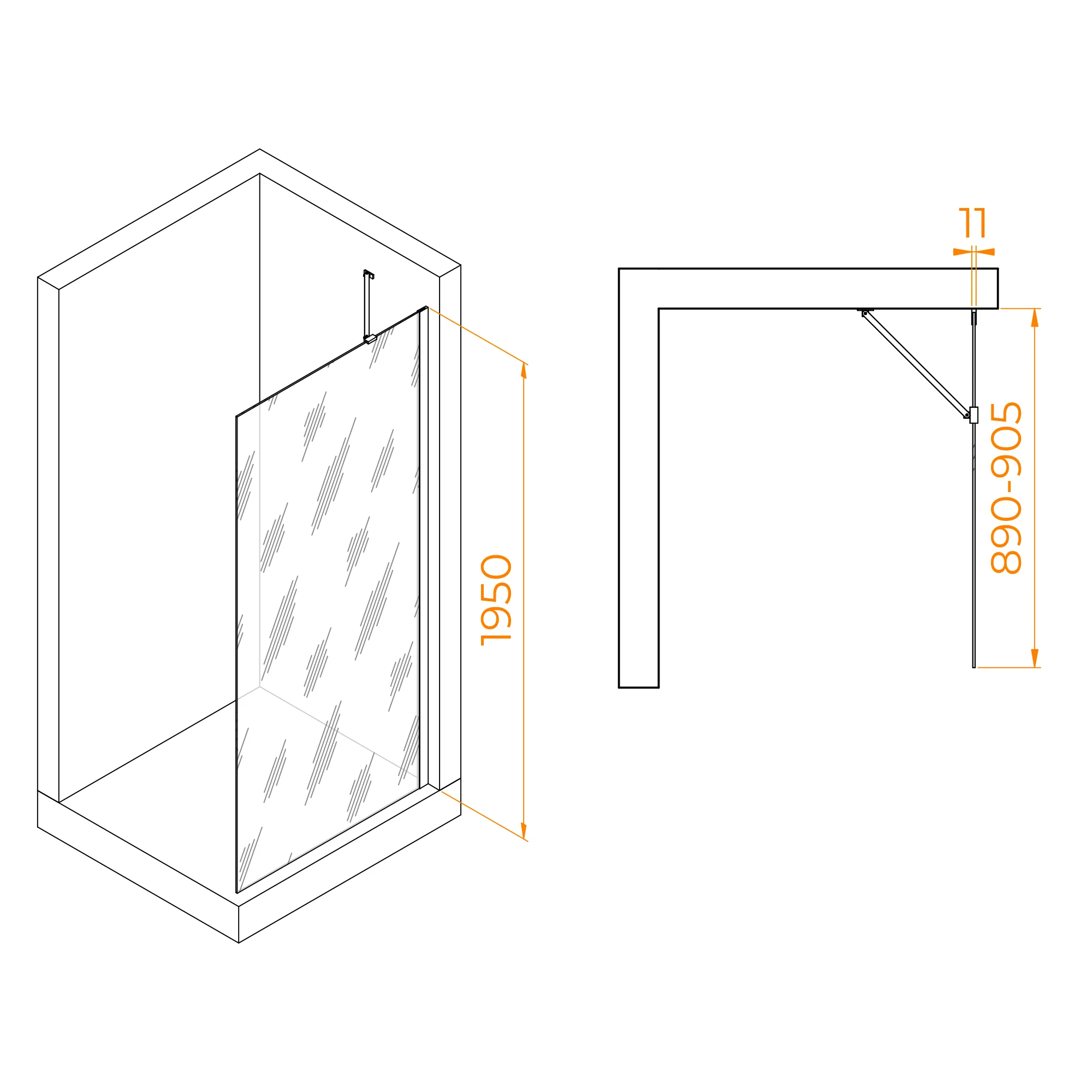 Толщина стекла перегородки составляет 6 мм, что обеспечивает прочность и надежность конструкции. Цвет стекла выполнен в прозрачном варианте, что позволяет сохранить видимость и пространство в ванной комнате. Цвет профиля черный, что придает перегородке современный и стильный вид.