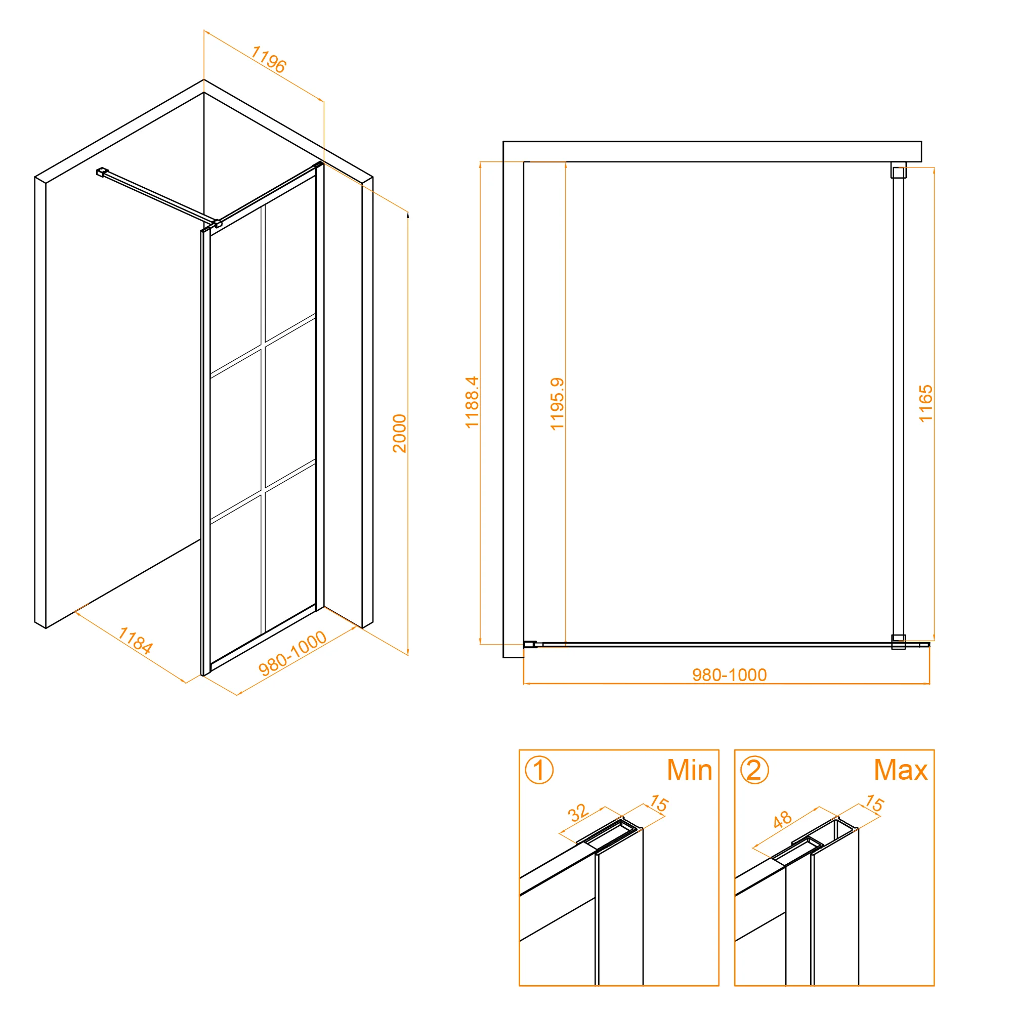 Толщина стекла составляет 8 мм, что обеспечивает высокую прочность и гарантирует безопасность использования. Исполнение стекла прозрачное с рисунком, который нанесён методом шелкографии. Пристенный профиль перегородки выполнен из качественного анодированного алюминия и имеет черный цвет, что отлично сочетается с большинством интерьеров.