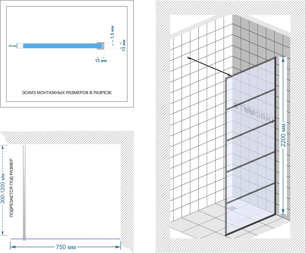 Душевая перегородка STWORKI Кронборг LOFT-GW- 75х220 75 см, профиль черный матовый 537899