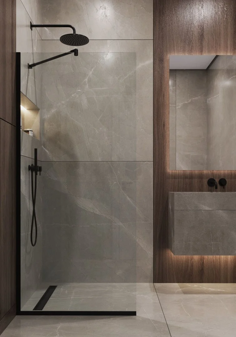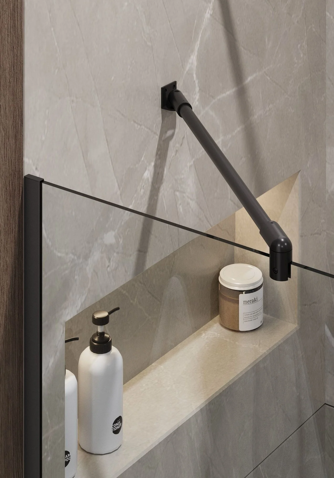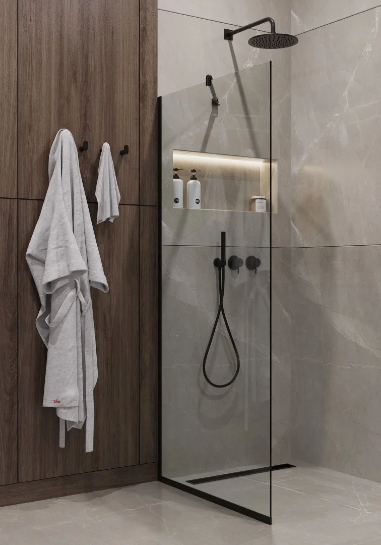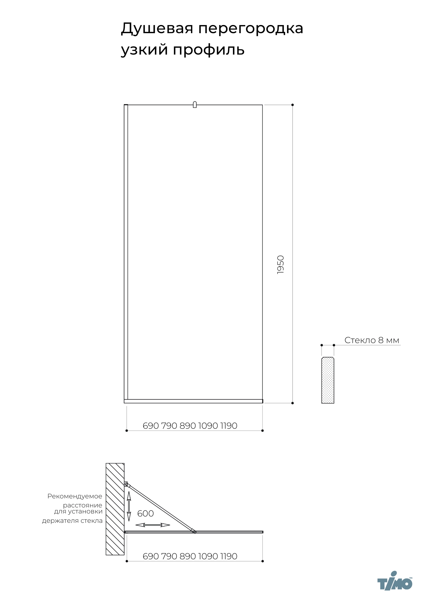 стекло прозрачное, толщина 8 мм , 1950x890-1 шт, Профиль П-образный , цвет черный -2 шт, Штанга стена-стекло -1 шт, Комплект крепежа-1 шт, Инструкция по монтажу-1 шт