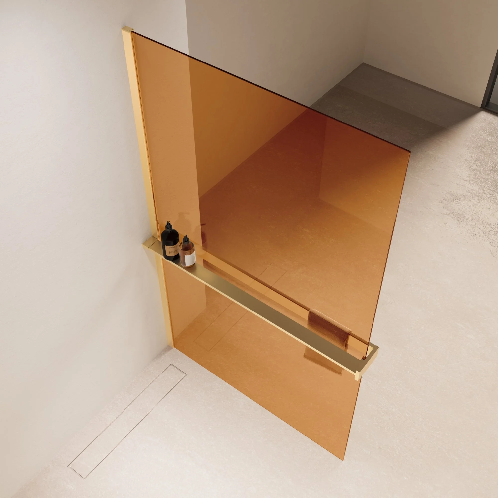 Душевая перегородка Vincea Walk-In VSW-1HR900GSG 900x2000 матовый золотой, стекло янтарь