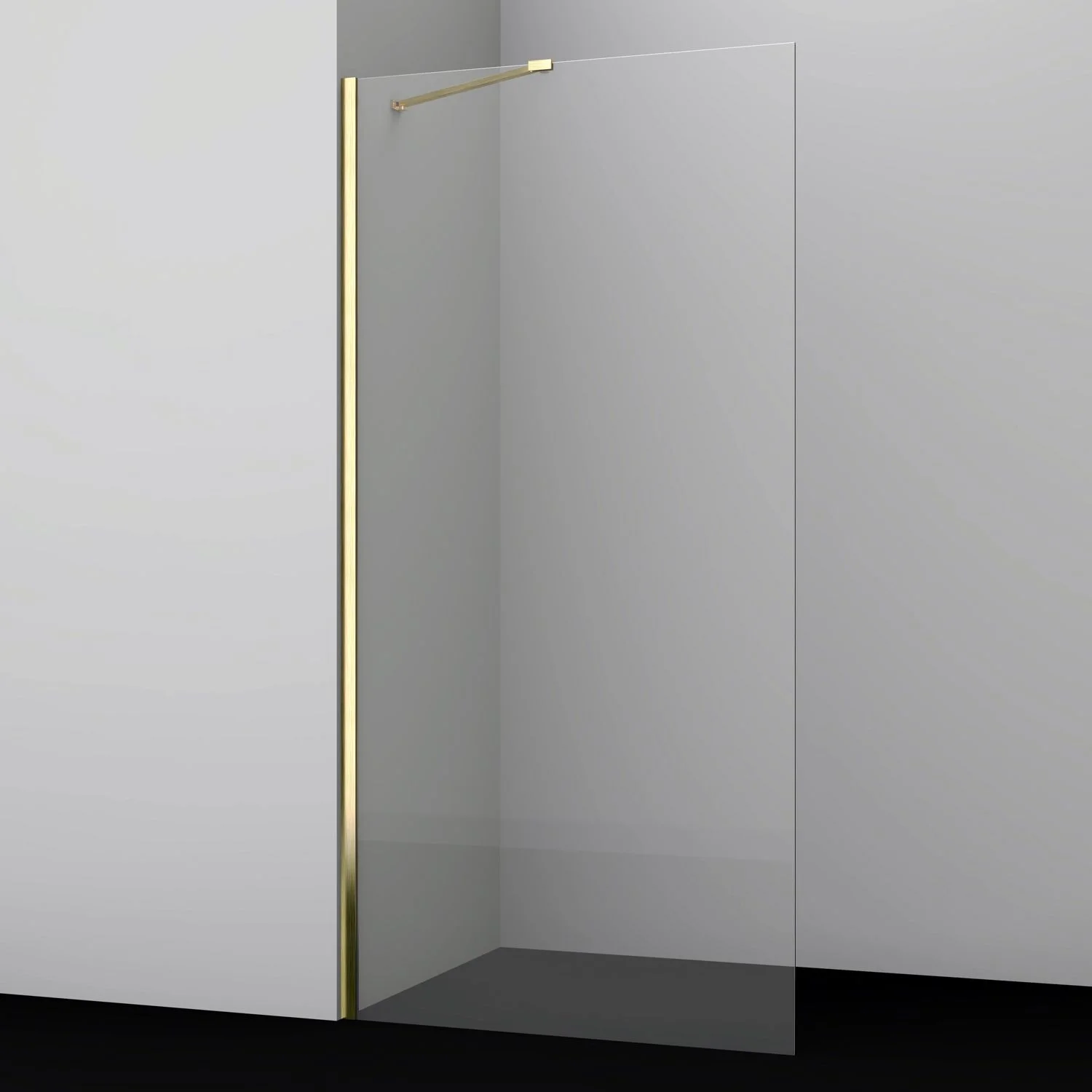 Характеристики:Закаленное прозрачное стекло 6 мм Покрытие стекла WasserSchutz Анодированный алюминиевый профиль 34 мм Регулирующий профиль до 12 мм Возможность правой и левой установки Цвет профиля: матовое золото