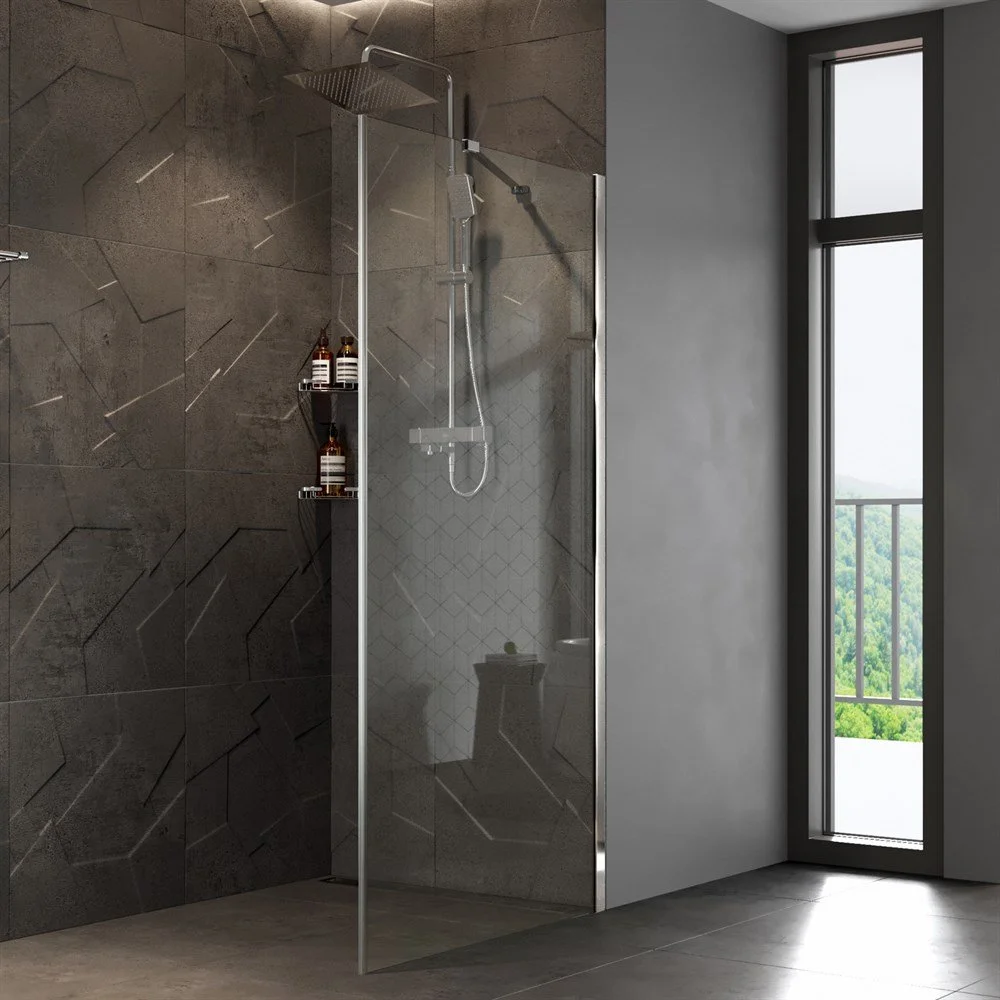 Характеристики:Закаленное прозрачное стекло 8 мм Покрытие стекла WasserSchutz Анодированный алюминиевый профиль 46 мм Цвет профиля: серебристый Силиконовые уплотнители Толщина профиля 14.1 мм Фиксатор к стене