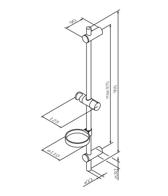 Штанга снабжена специальными держателями и мыльницей линии которых повторяются во всей коллекции подчеркивая единую концепцию дизайна.