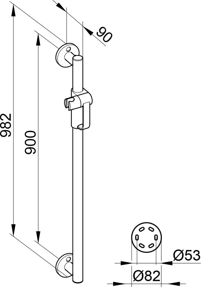 Душевая штанга Keuco Plan Care 34912010900, 982 мм, хром