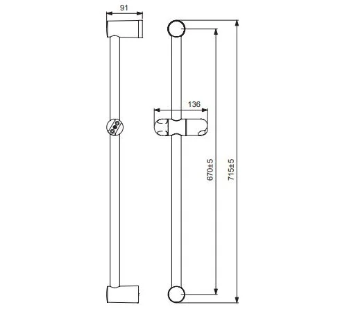• Штанга душевая 700 мм, Ø24 мм