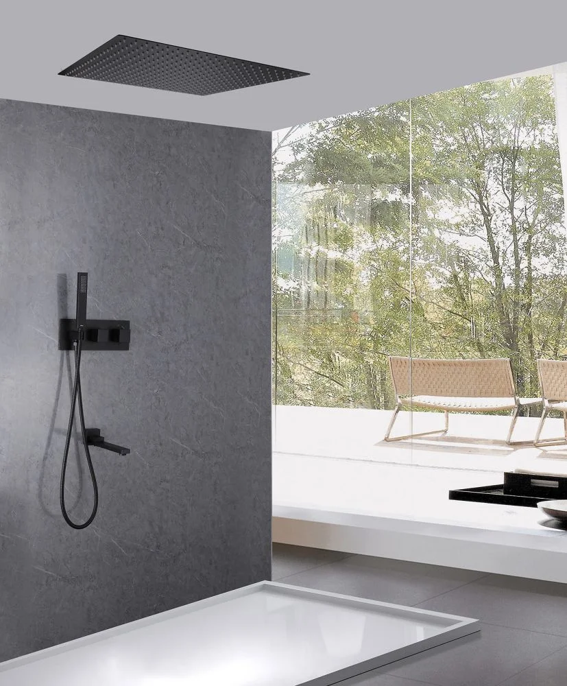Душевая система ABBER Daheim AF8254B скрытого монтажа с изливом, термостат, черная матовая