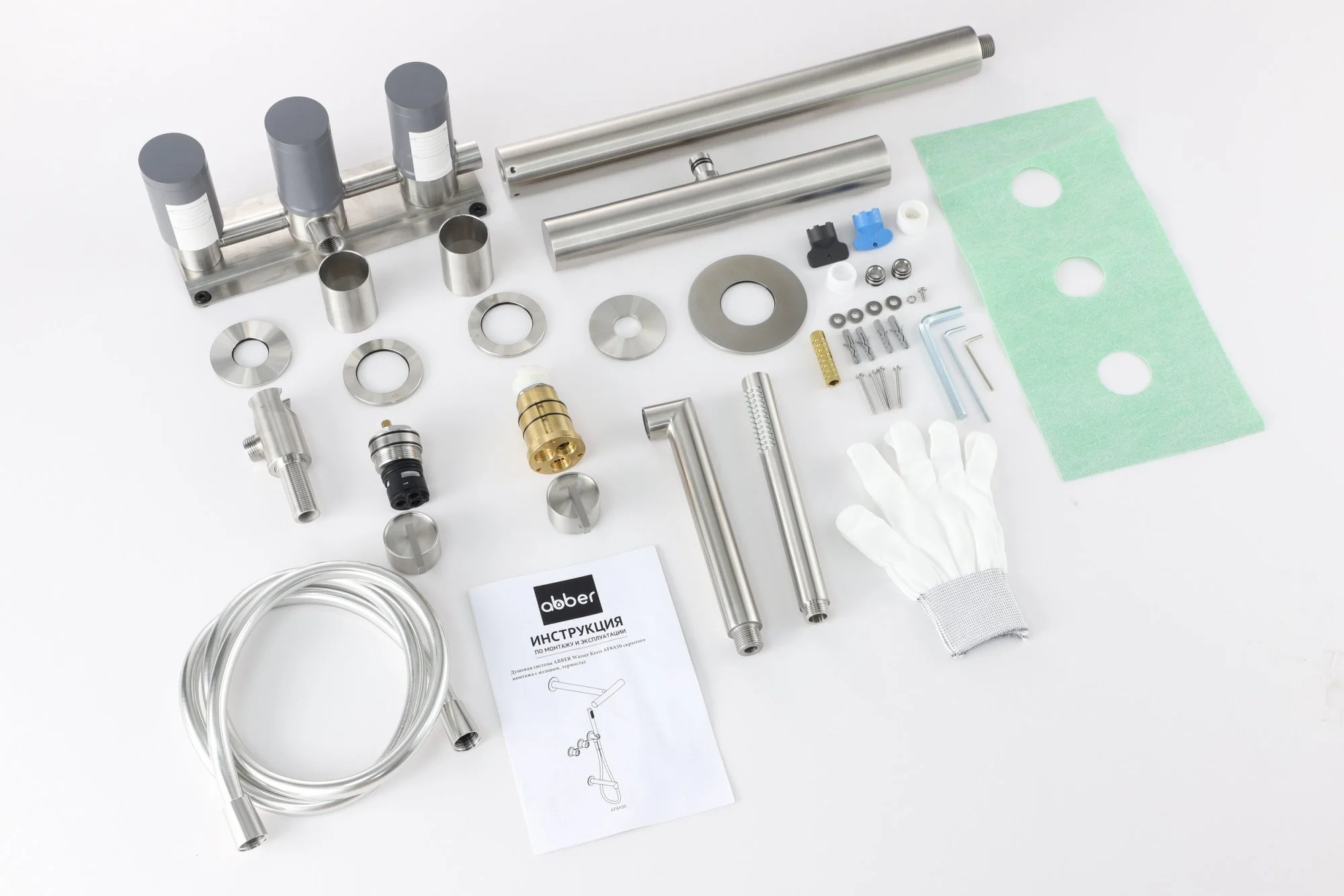 Душевая система ABBER Perfekte 316 AF8A50BST скрытого монтажа с изливом, сталь брашированная