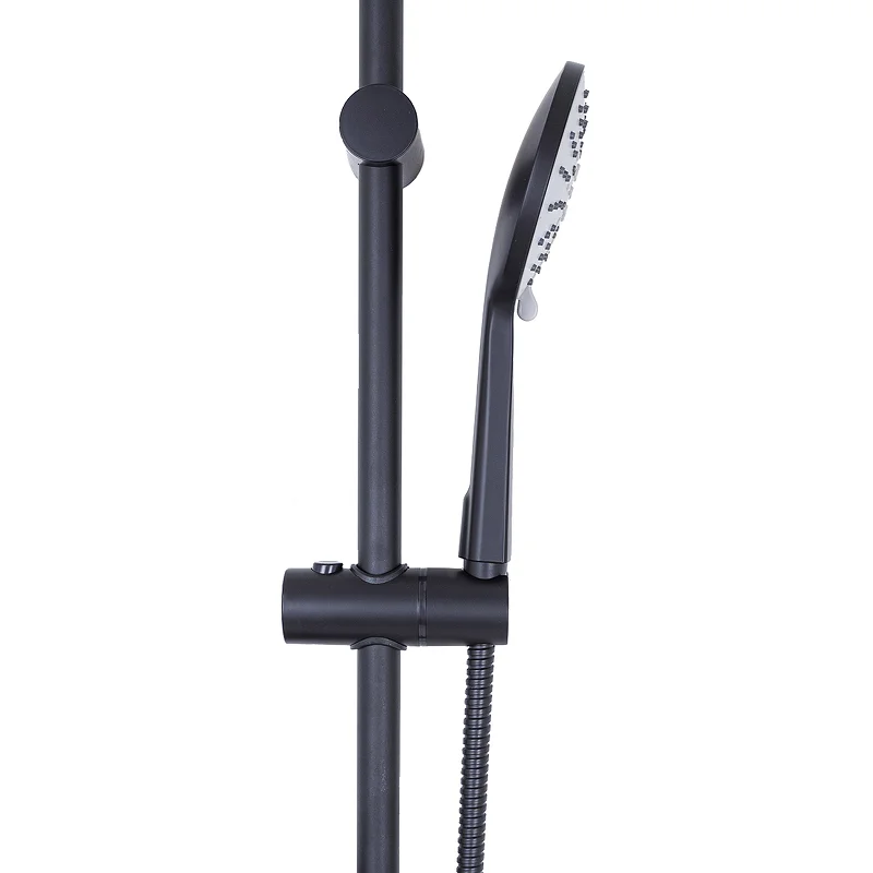 Душевая система Agger Breeze украсит интерьер ванной комнаты в современном стиле. Верхний душ (d 225 мм) создаёт эффект тропического дождя, что дарит непередаваемые эмоции во время ежедневных банных процедур. Ручной душ 125 мм - 5 режимов струи, держатель лейки и верхнего душа - с регулировкой угла наклона, душевой шланг 150 см в металлической оплетке с защитой от перекручивания. Штанга 970 мм с подвижным держателем (возможность установки в старые отверстия). Цвет матовый черный.