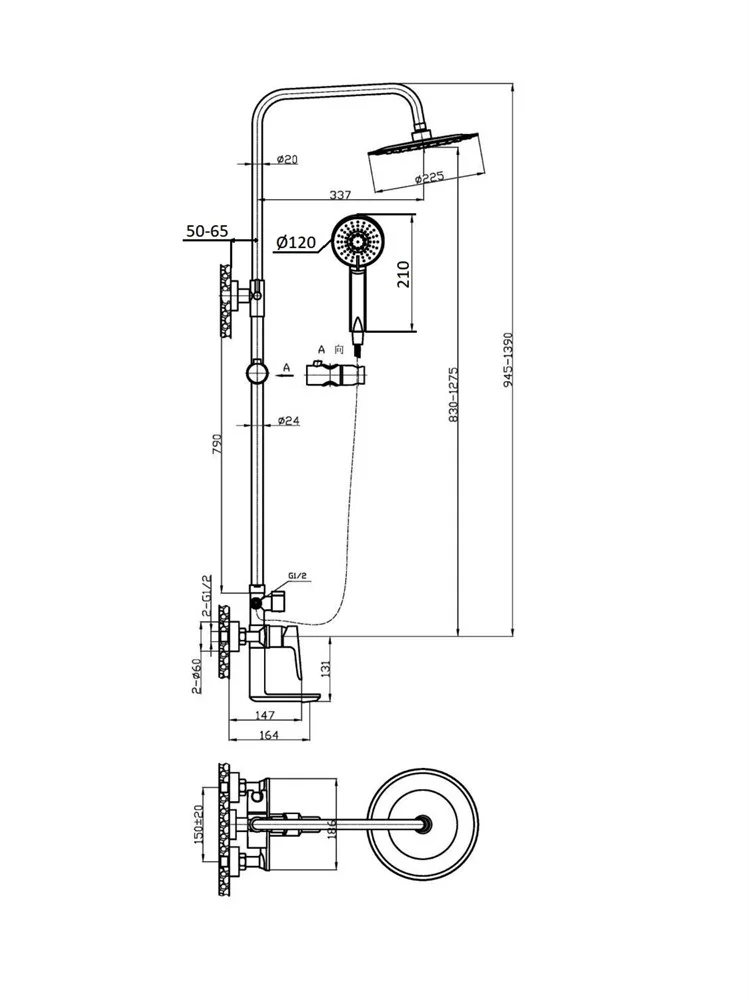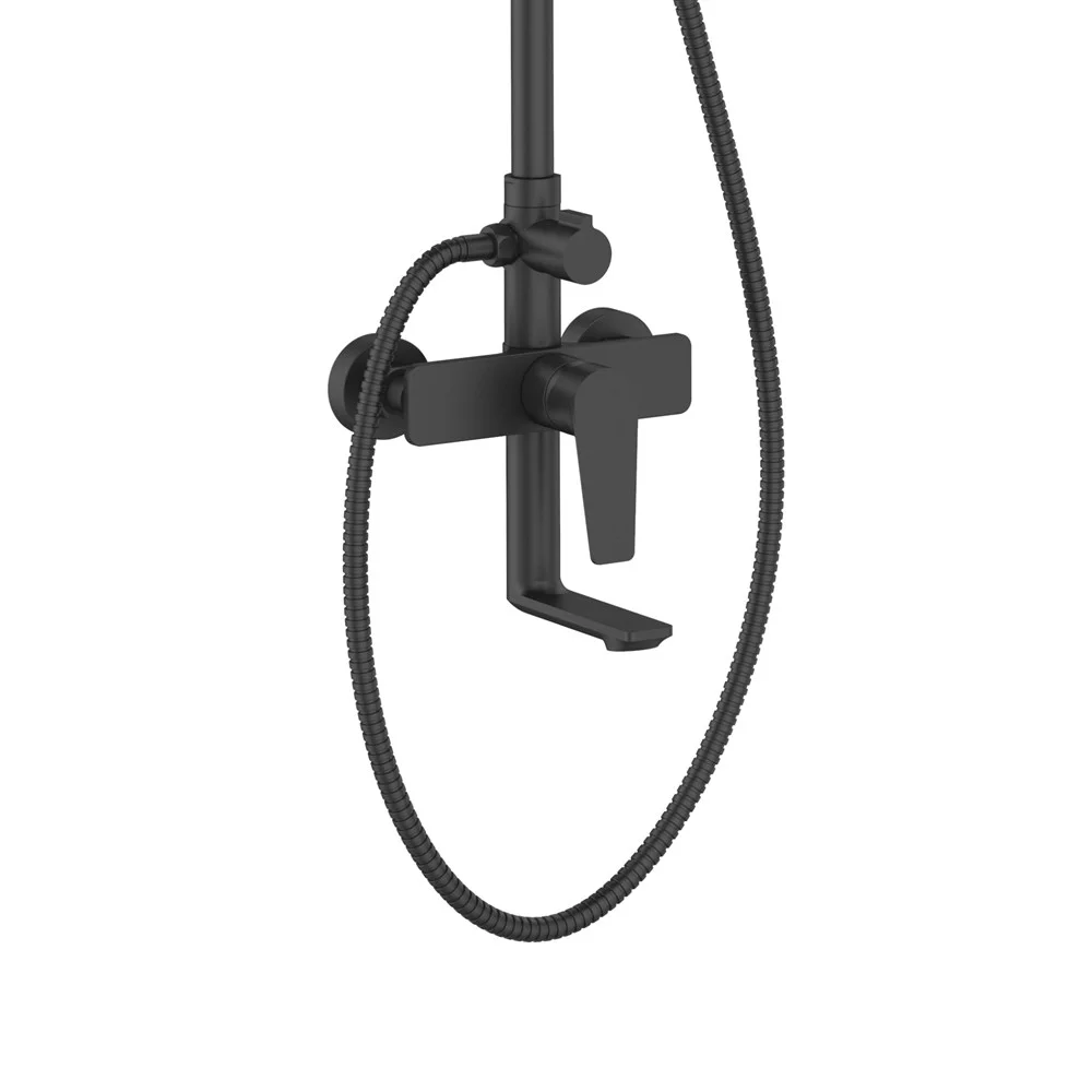 Душевая система Agger Brilliant прекрасно дополнит интерьер ванной комнаты в современном стиле: поворотный излив (16,4 см), телескопическая штанга (945-1390 мм), верхний душ d 225 мм с регулировкой угла наклона и силиконовыми наконечниками (с защитой от известкового налета), ручной душ 120 мм (5 режимов), регулируемый по высоте и наклону держатель ручного душа, шланг 150 см с защитой от перекручивания (в металлической оплетке), смеситель с керамическим картриджем (переключение на душ - поворотом излива). Цвет матовый черный.