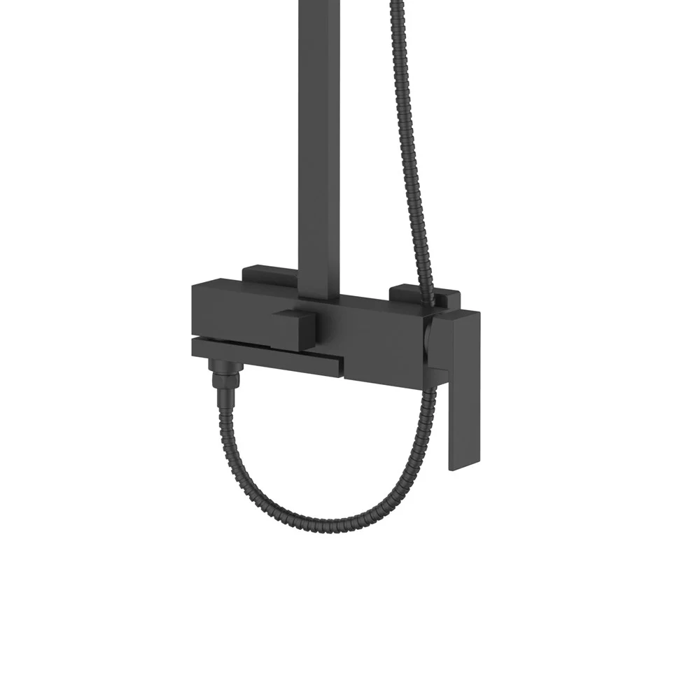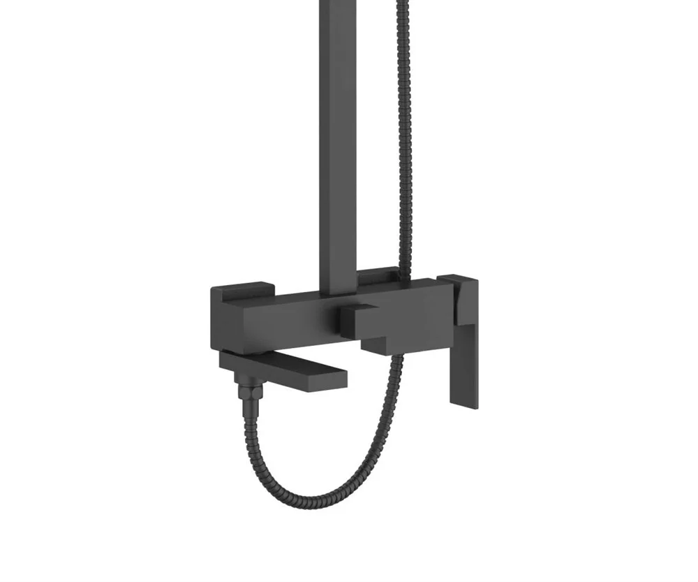 Душевая система Agger Great прекрасно дополнит интерьер ванной комнаты в современном стиле: поворотный излив (16,5 см), телескопическая штанга (751-1266 мм), квадратный верхний душ 250х250 мм с регулировкой угла наклона и силиконовыми наконечниками (с защитой от известкового налета), ручной душ (1 режим), регулируемый по высоте и наклону держатель ручного душа, шланг 150 см с защитой от перекручивания (в металлической оплетке), смеситель с керамическим картриджем (переключение на душ - поворотом излива). Цвет матовый черный.