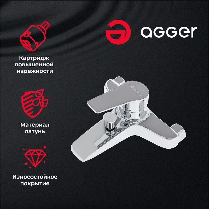 Душевая система Agger Right со смесителем для ванны/душа в цвете глянцевый хром: верхний душ (215х215 мм) создаёт эффект тропического дождя, что дарит непередаваемые эмоции во время ежедневных банных процедур. Ручной душ 95х100 мм (1 режим) на гибком полутораметровом шланге (в металлической оплетке) с защитой от перекручивания. Держатели верхнего и ручного душа с регулировкой угла наклона, штанга 970 мм. с подвижным держателем (возможность установки в старые отверстия). В комплекте также переключатель потоков и пластиковая мыльница. Подвижные детали отличаются долговечностью. Форсунки верхнего и ручного душа с функцией легкого очищения от известкового налета. Однозахватный смеситель будет отлично смотреться в интерьере современной ванной комнаты. Хромированная поверхность с многократной полировкой, за которой очень просто ухаживать мягкой салфеткой, обеспечит блеск на долгие годы. Корпус изделия изготовлен из высококачественной латуни, не подверженной коррозии от длительного контакта с водой. Фирменный картри
