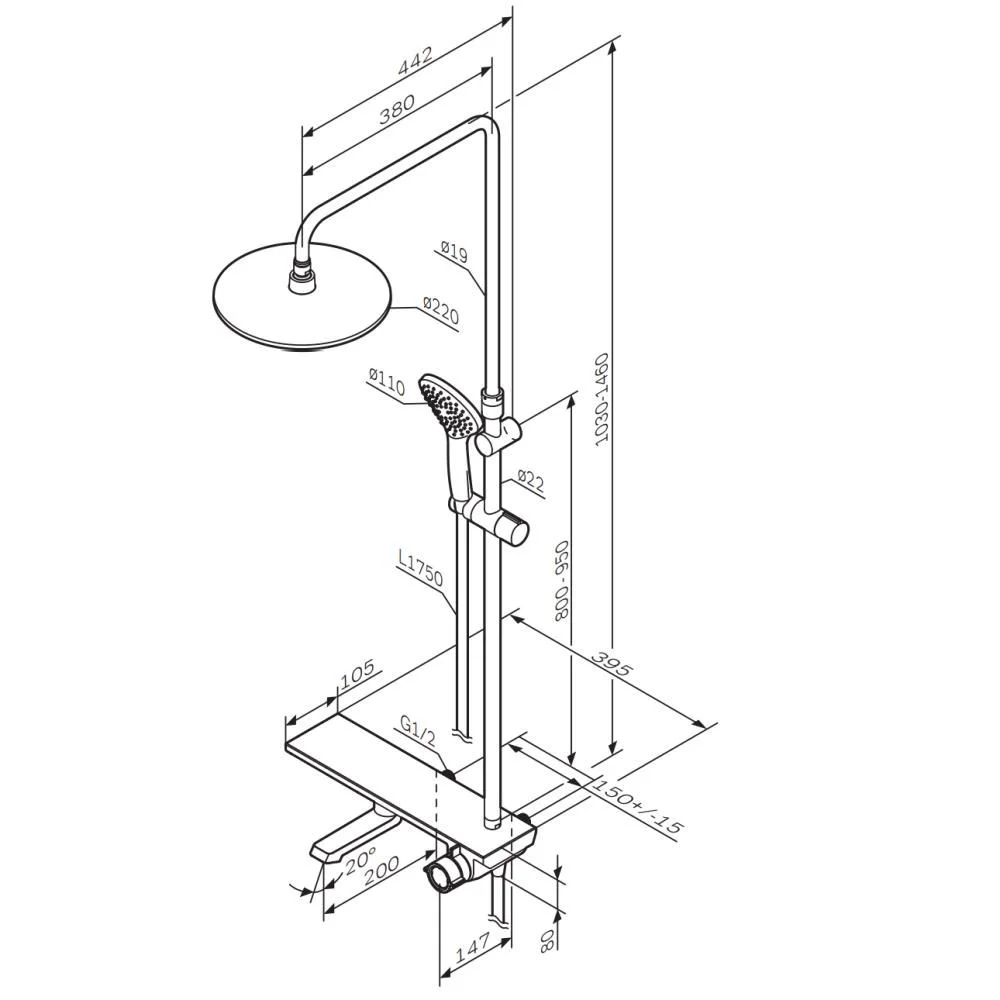 Длина душевого шланга, мм