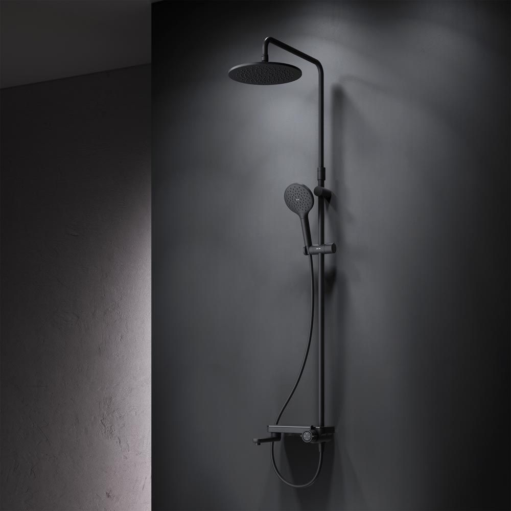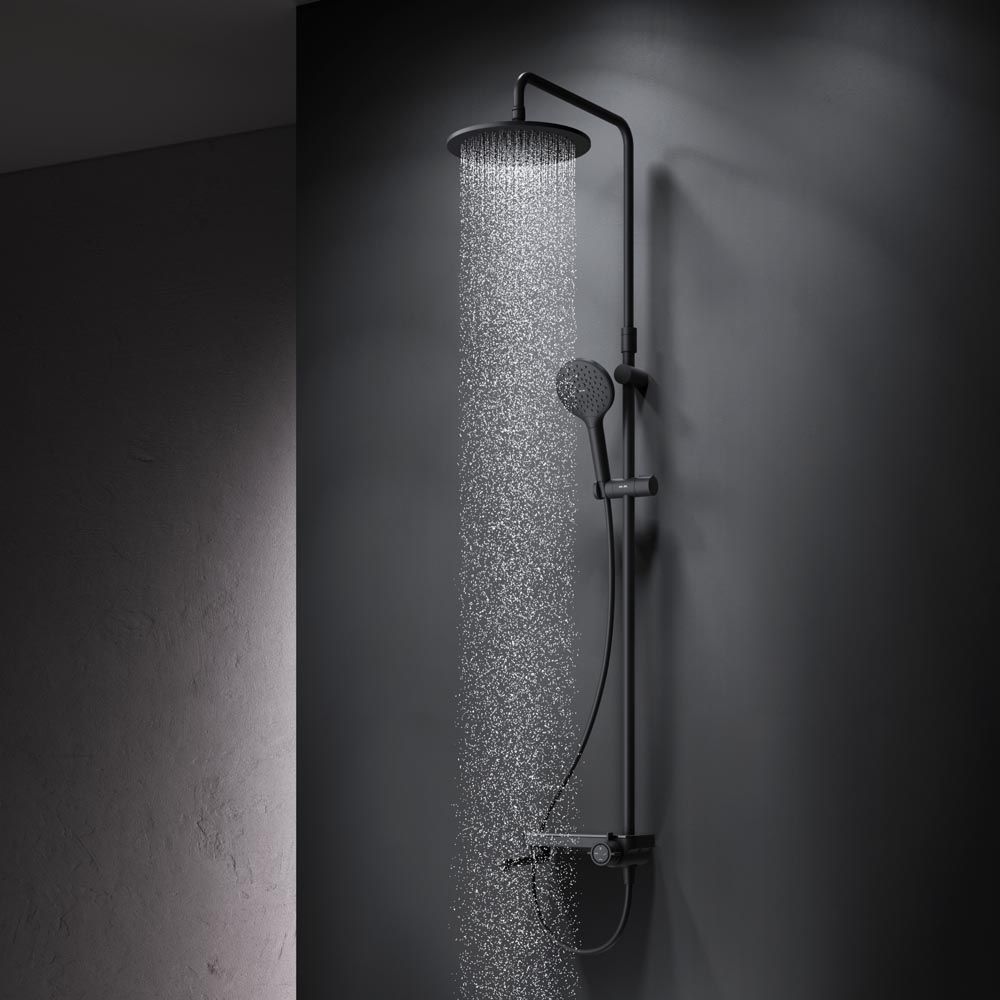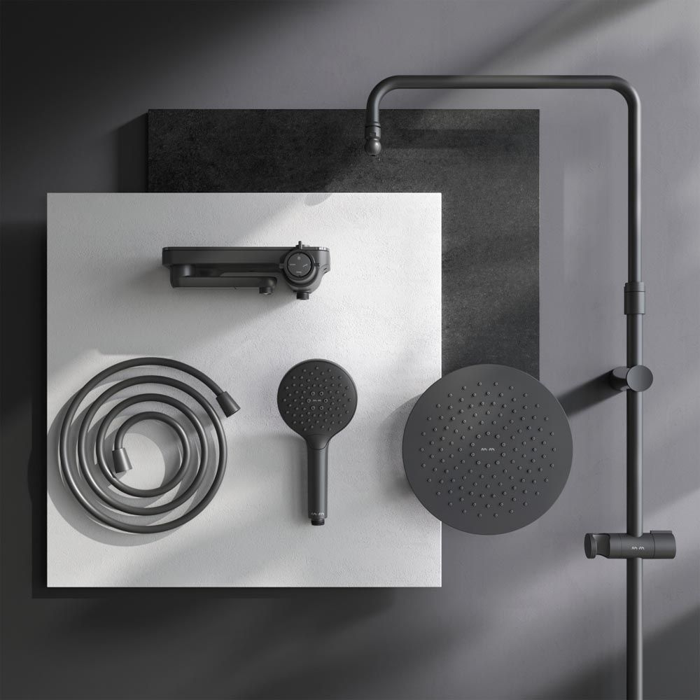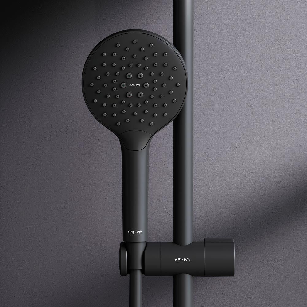 Тотальный дизайн в действии: все детали душевой системы – от пропорций ручного и верхнего душей до рисунка расположения форсунок на лейках.