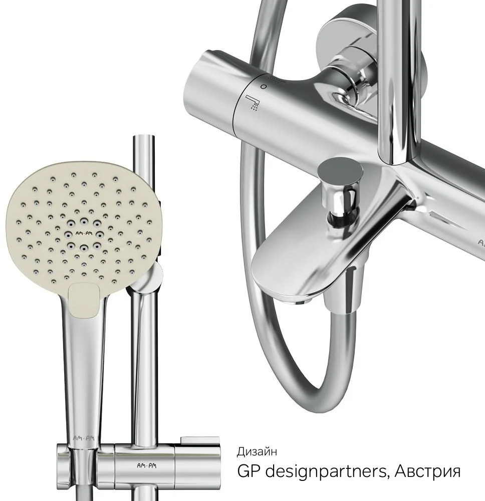Тотальный дизайн в действии: все детали душевой системы – от пропорций ручного и верхнего душей до рисунка расположения форсунок на лейках – подчинены единой концепции в ультрамодном стиле Dynamic Organic.