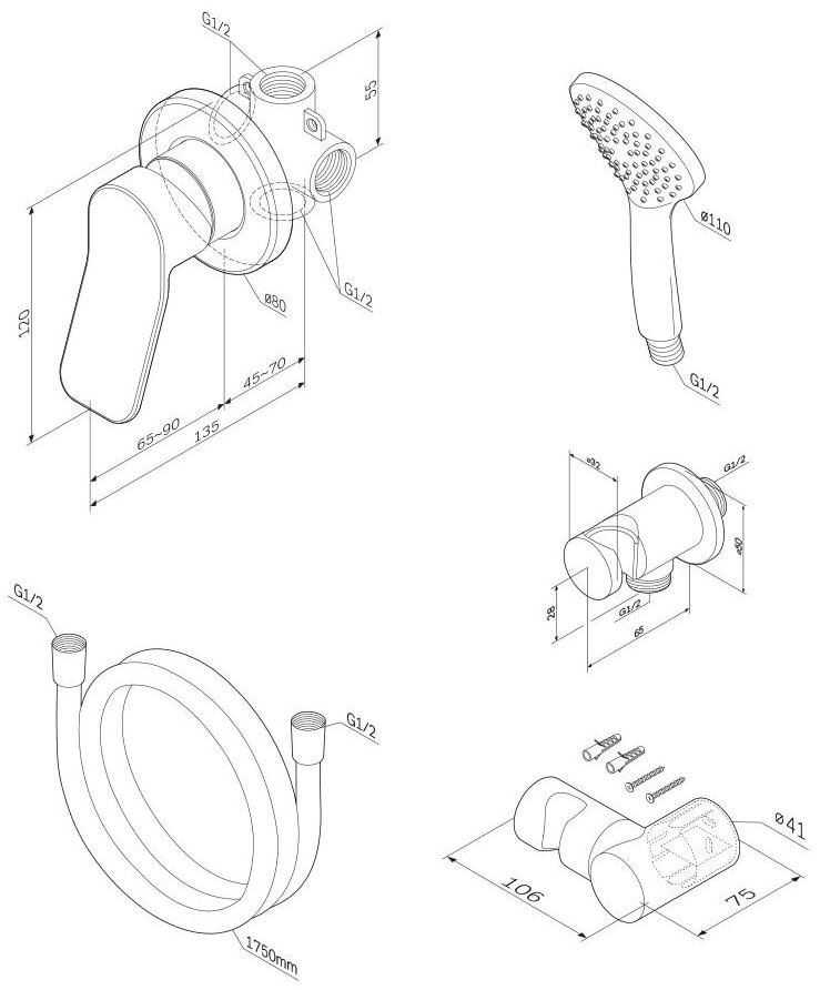 Душевая система AM.PM X-Joy FB85A2H000 встраиваемая С ВНУТРЕННЕЙ ЧАСТЬЮ, для душа