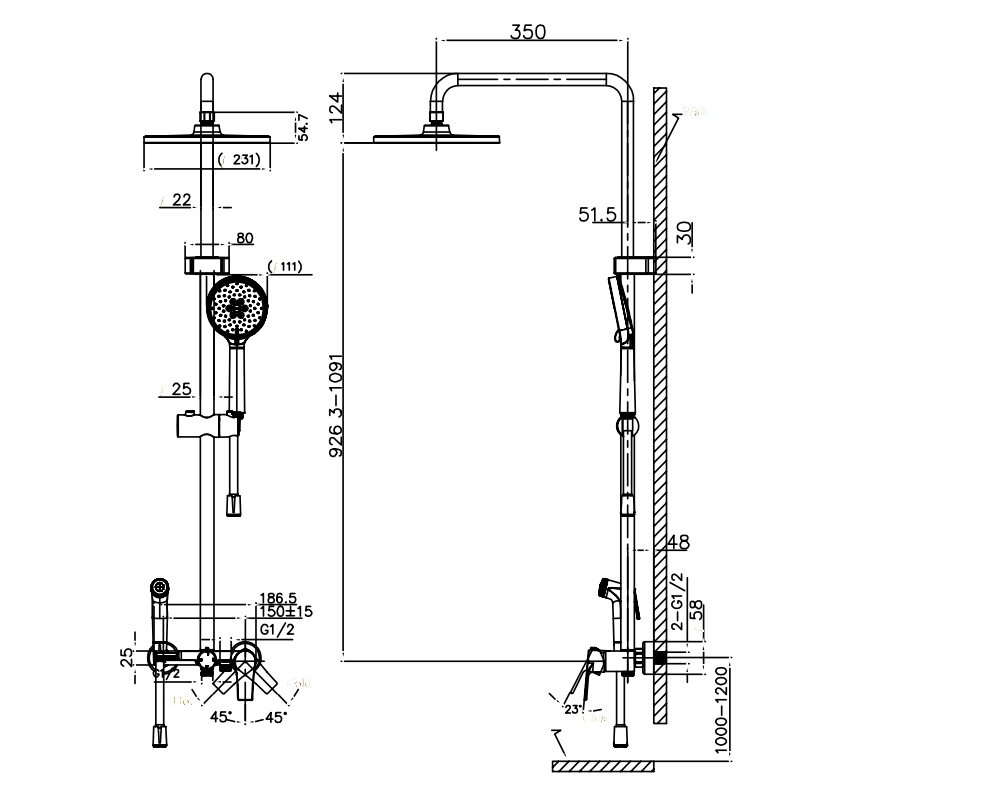 душевая стойка, верхний душ, душевой гарнитур, крепления, гибкая подводка, шланговое подключение, излив, кронштейн для верхнего душа, переключатель потоков, смеситель для ванны с душем, гигиенический душ