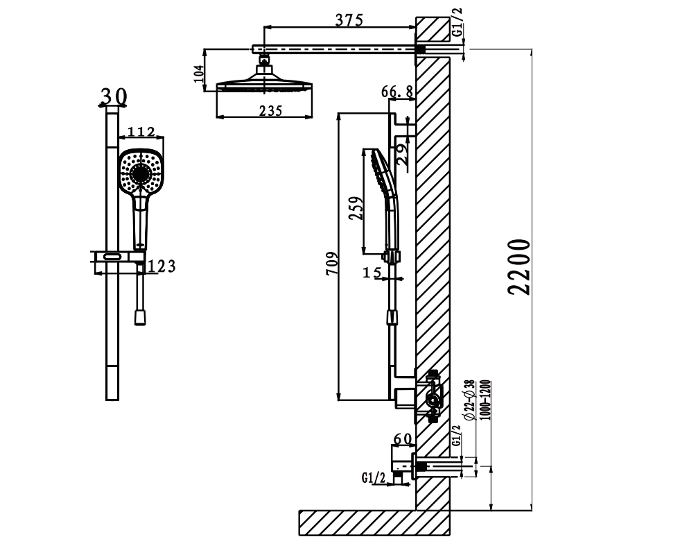 душевая штанга, верхний душ, душевой гарнитур, крепления, гибкая подводка, шланговое подключение, кронштейн для верхнего душа, переключатель потоков, вентель
