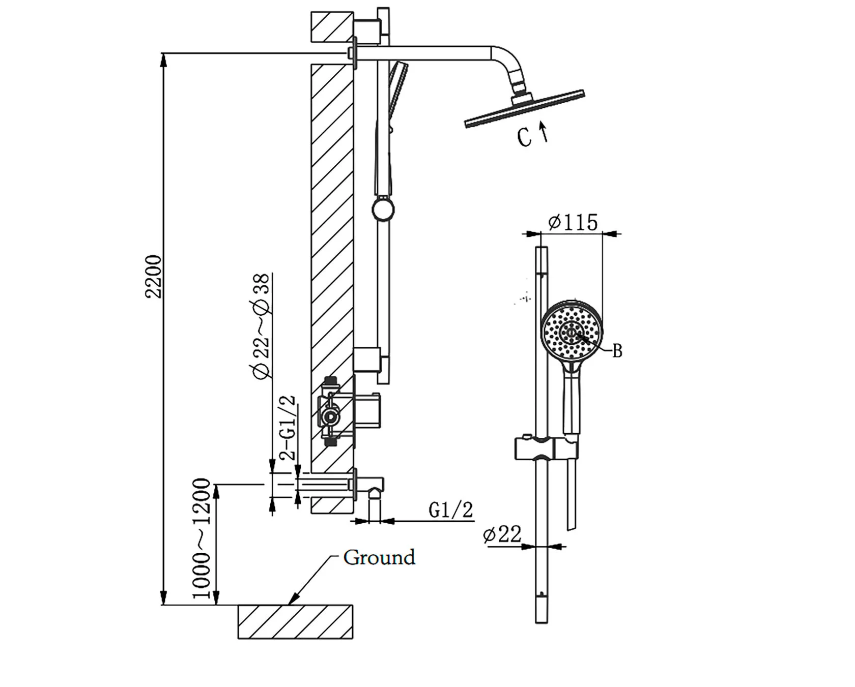 смеситель, верхний душ, ручной душ, держатель, шланг