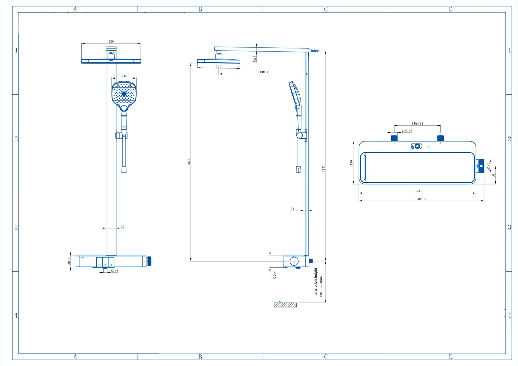 душевая стойка, монтажный комплект