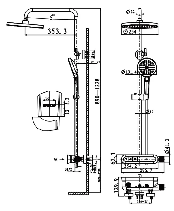 душевая стойка, держатель для душа, верхний душ, душевой гарнитур, крепления, гибкая подводка, шланговое подключение, кронштейн для верхнего душа, переключатель потоков, излив, смеситель для ванны с душем