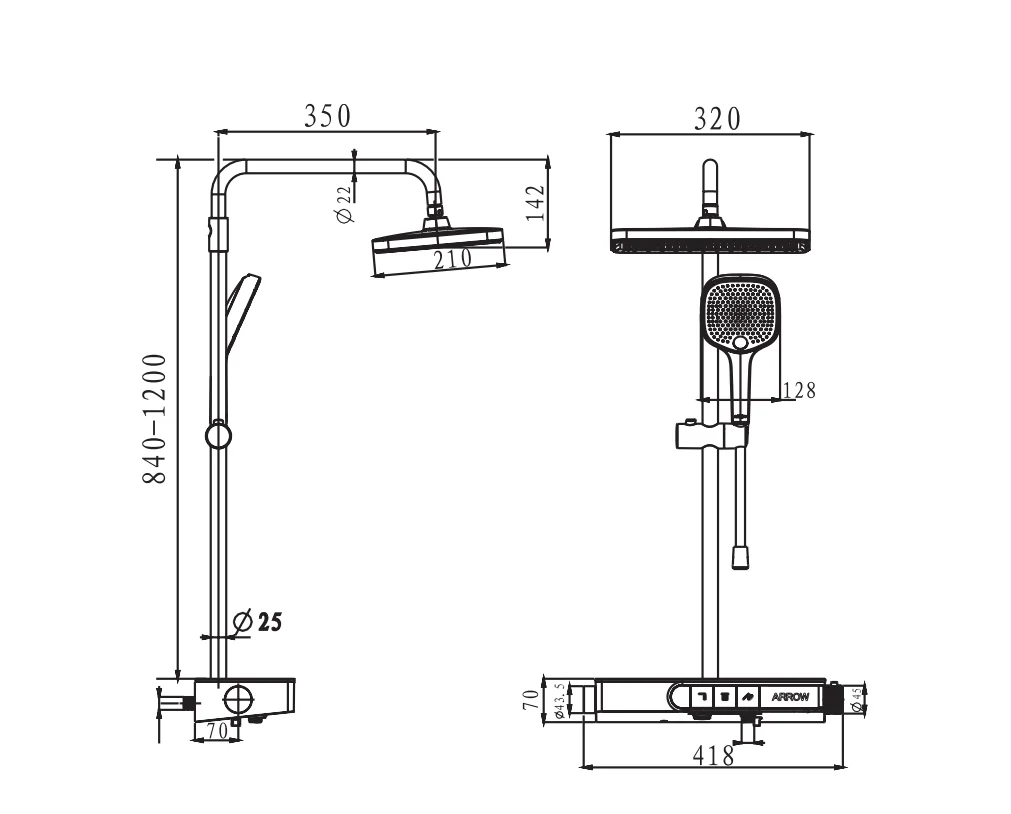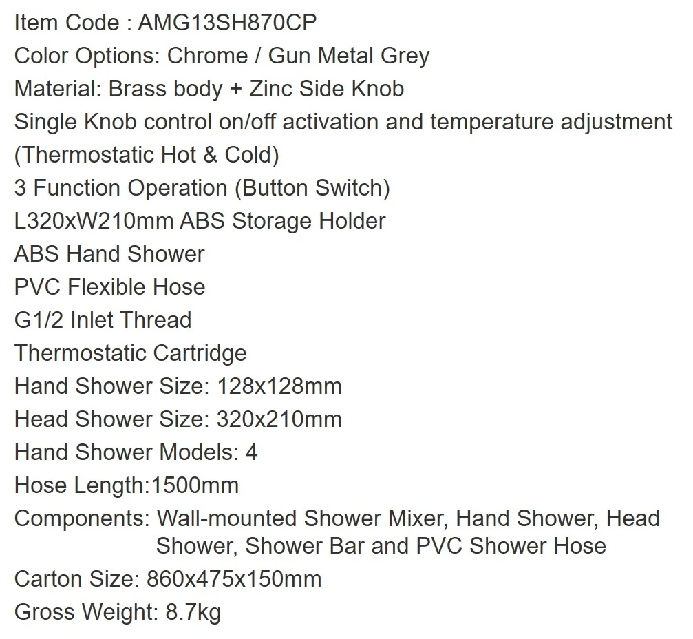Душевая система ARROW AMG13SH870CP с термостатом хром