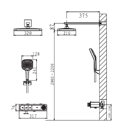 держатель для душа, верхний душ, душевой гарнитур, кронштейн для верхнего душа, крепления, гибкая подводка, шланговое подключение, переключатель потоков, смеситель для душа