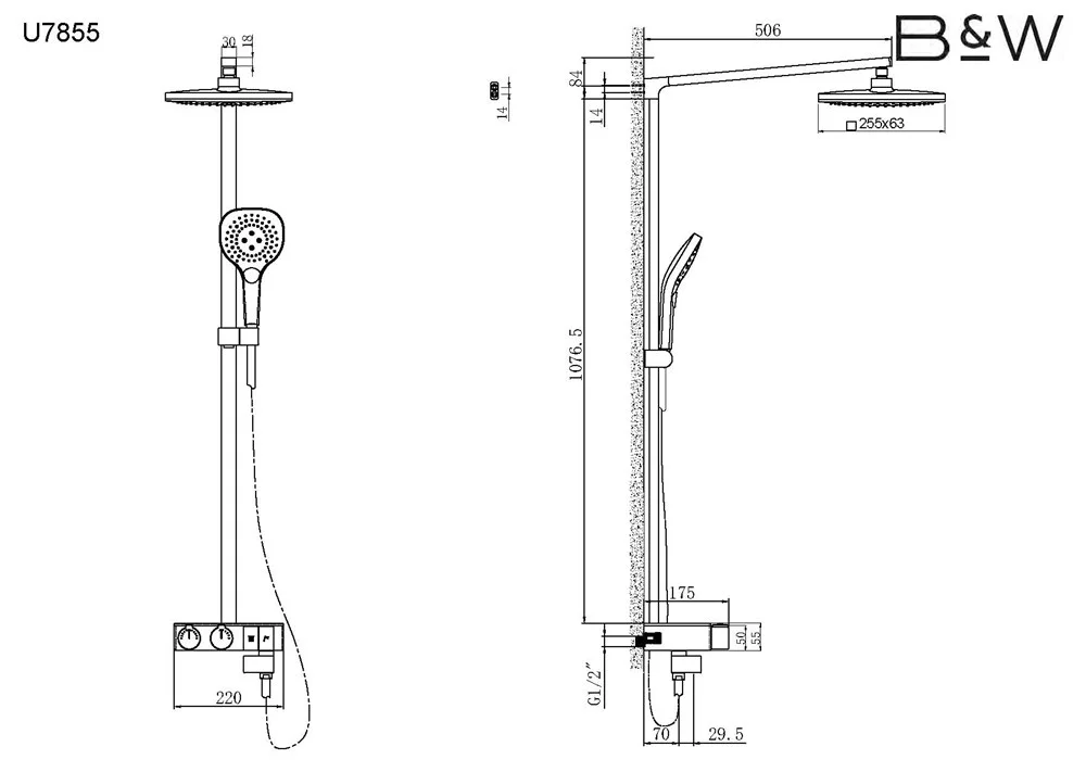 • Верхняя лейка ABS 255 x 255 x 63 мм