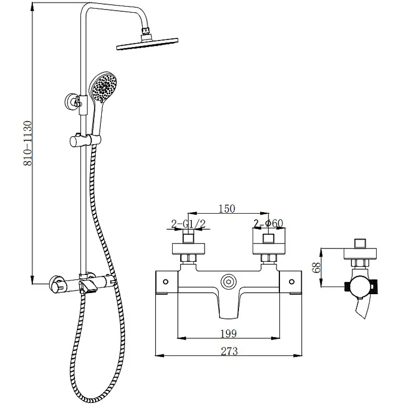 Душевая система BOCH MANN OGLIO B TS BM9649 с термостатом черный