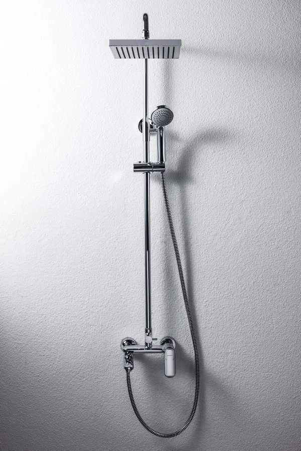 Душевая стойка для ванны Bravat Opal с большим квадратным верхним душем и смесителем. Серия известна не только своим качеством, но и высоким уровнем эргономики.