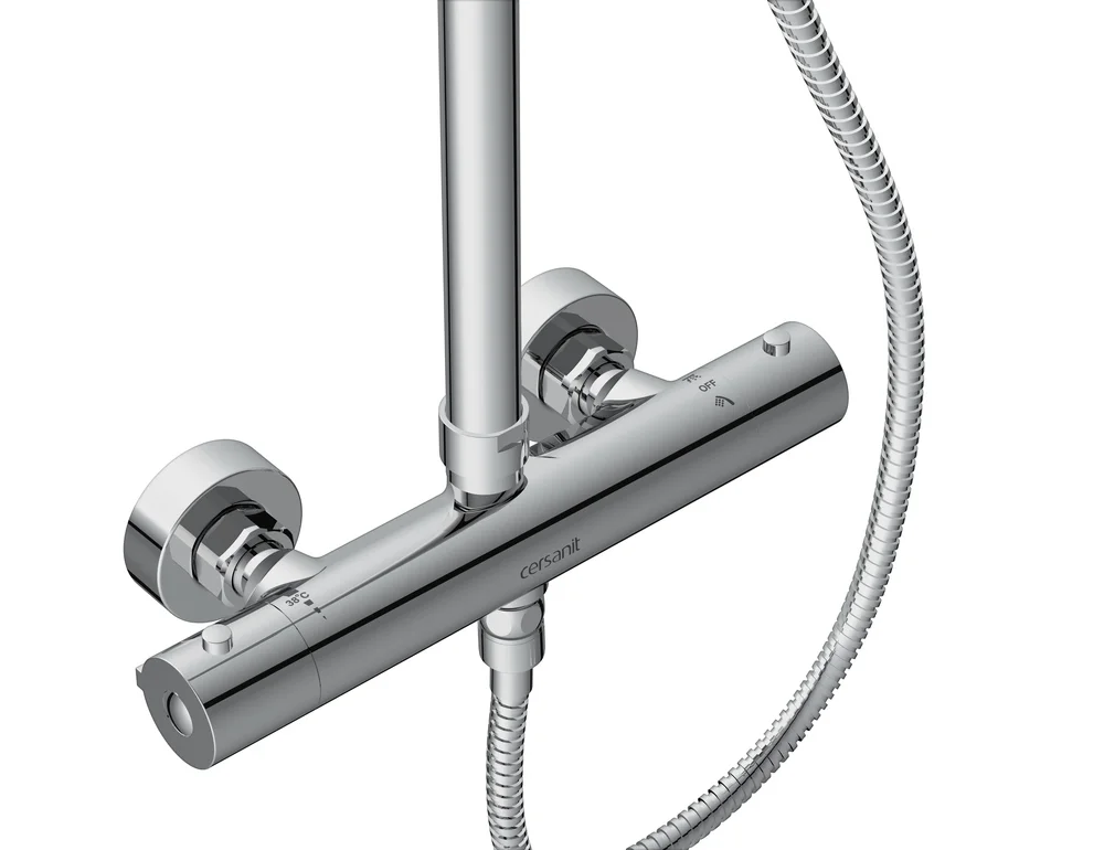 Термостатические смесители идеально смешивают воду и обеспечивают подачу потока установленной температуры. Разработка Cersanit чутко реагирует на колебания температуры воды в диапазоне трёх десятых секунды, благодаря чему душ остаётся стабильно тёплым, даже если в трубах меняется давление или в доме одновременно работают несколько устройств с потреблением воды.