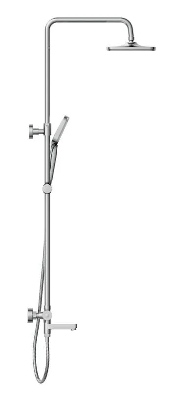 душевой набор (тропический душ, лейка, рейлинг, душевой шланг в металлической оплетке 1/2" 150см), смеситель, комплект крепления , инструкция по эксплуатации, паспорт изделия с гарантийным талоном
