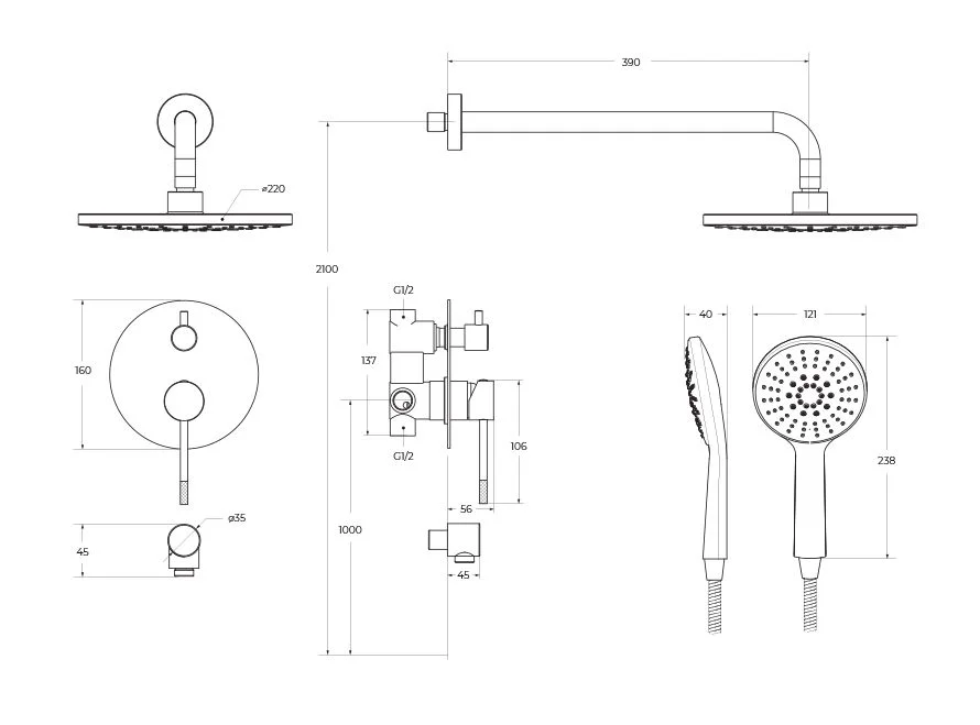 Душевой шланг, душевая лейка, держатель для душа, верхний душ, кронштейн для душа