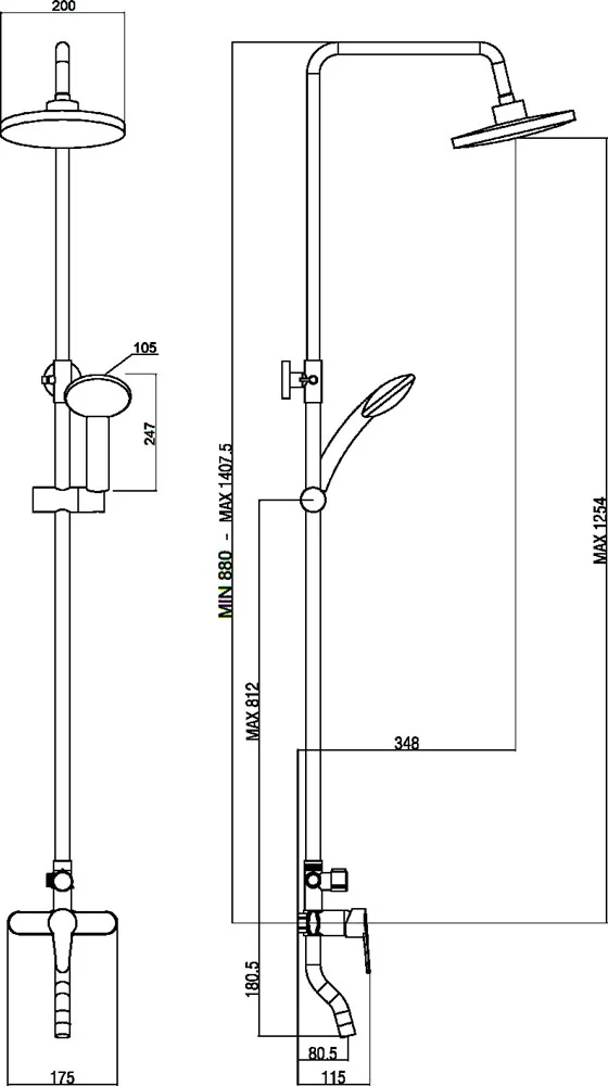 Душевая система DIWO Смоленск SM-08b черная матовая 579250