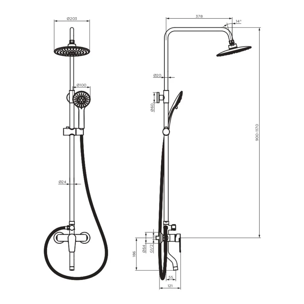 Длина душевого шланга, мм