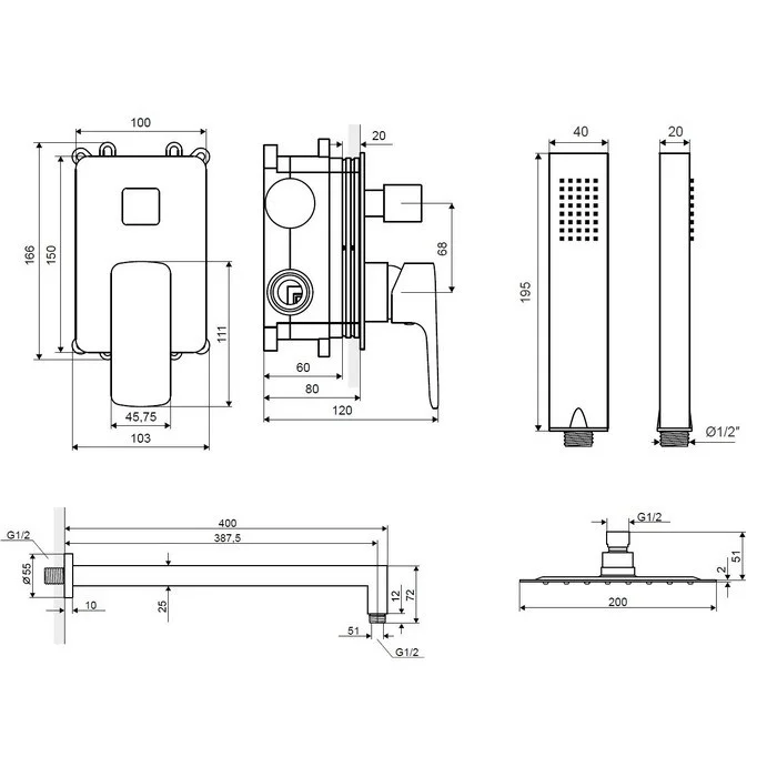 - верхний душ 20х20 см;