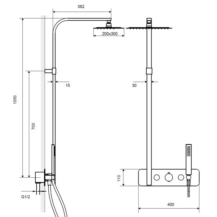- два входа (для горячей и холодной воды): 1/2”;