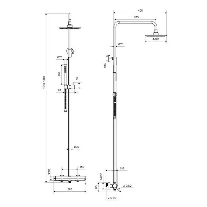 - размер верхнего душа: Ø20 см;