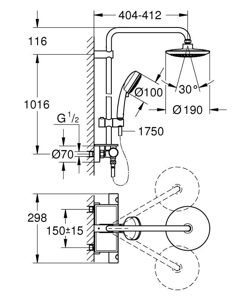 - Термостат для душа Grohtherm 1000 Cosmopolitan с Aquadimmer