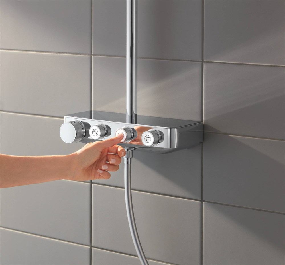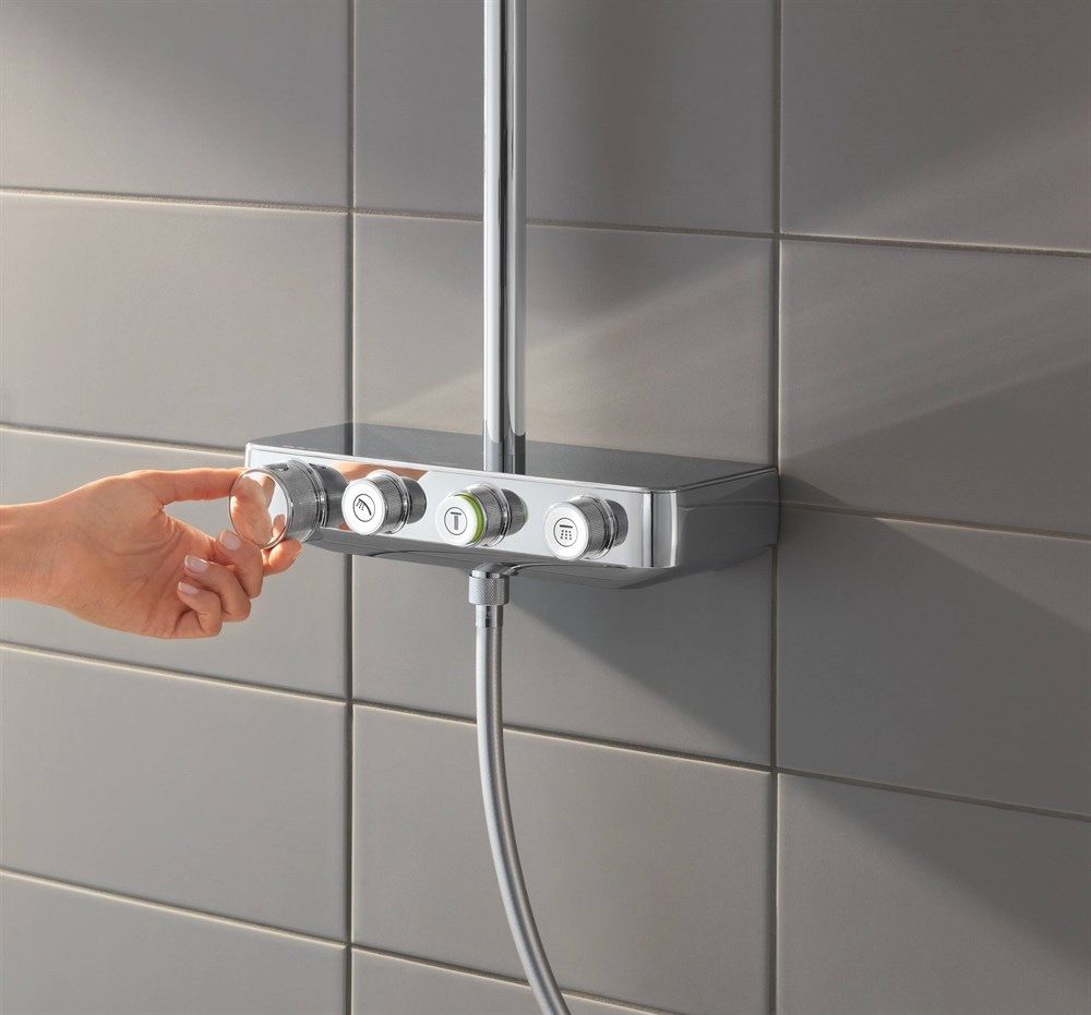 Ваш душ должен быть вашим убежищем - именно поэтому душевая система GROHE Euphoria SmartControl 310 Cube предлагает не только различные режимы струи, но комбинацию комфорта и безопасности.