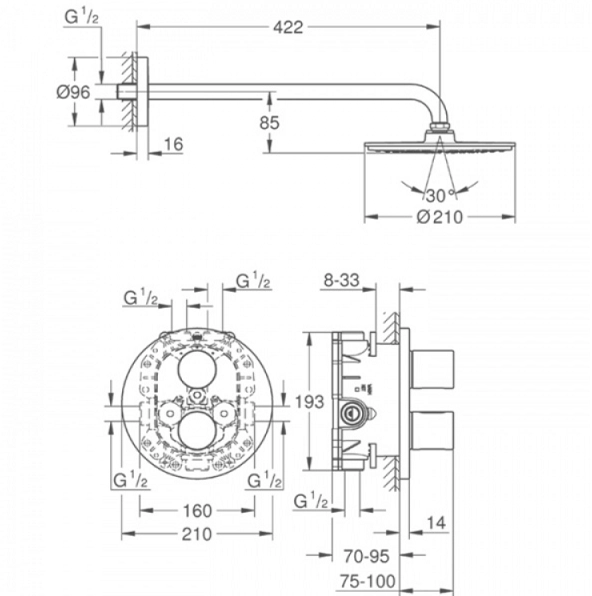 - Grohtherm 3000 Cosmopolitan Термостат для душа с Aquadimmer (19468000)