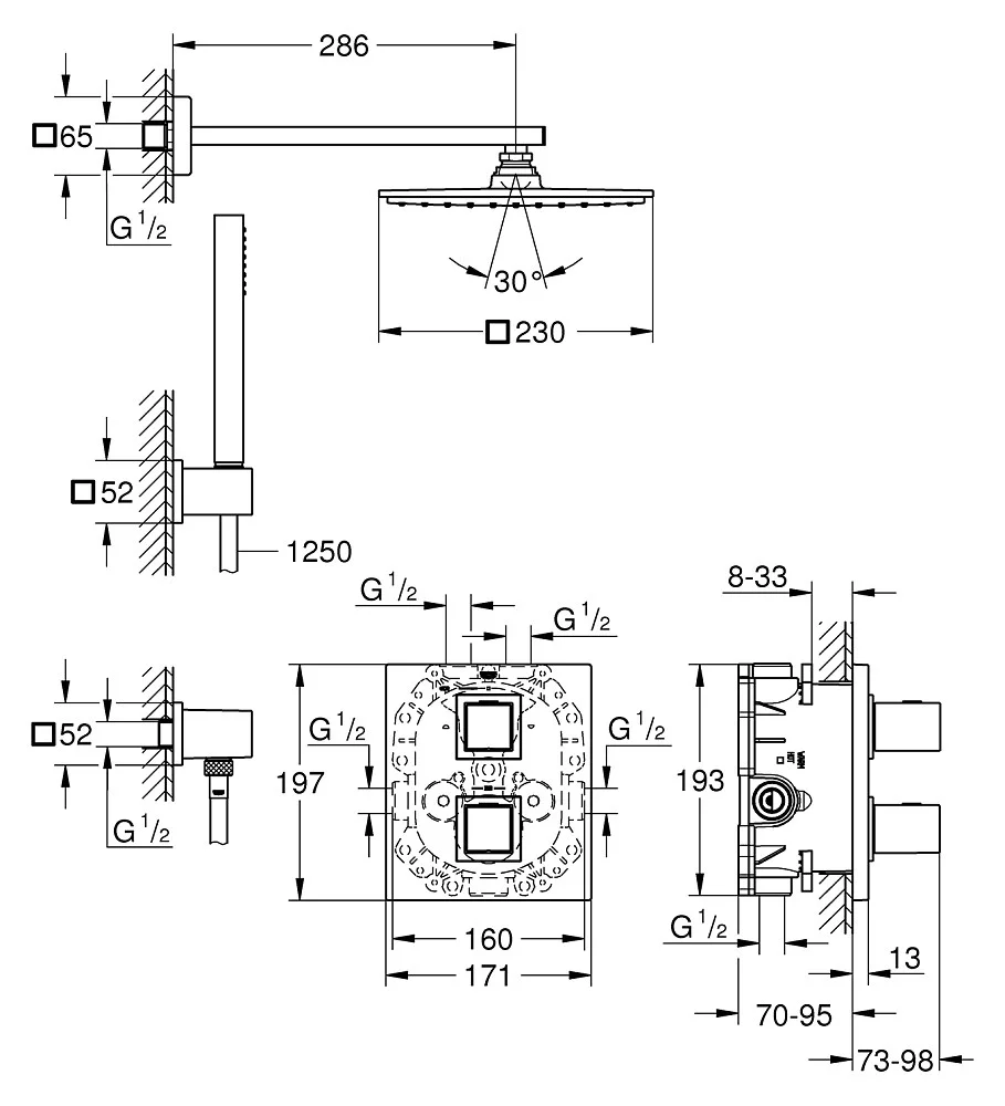 - Для скрытого монтажа (35500000 (Термостат для ванны GROHE Rapido T (универсальный, встраиваемая монтажная часть), хром))