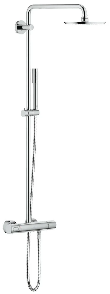 Создайте собственную зону комфорта с помощью этого регулируемого верхнего душа и, принимая душ, наслаждайтесь ощущением, будто Вас омывает ласковый летний дождь. Если же Вам захочется взбодриться утром или освежить тело тонизирующим водным массажем с помощью более интенсивного концентрического режима струи, в этом Вам поможет ручной душ в тонком корпусе и со шлангом, который не перекручивается. Благодаря защитному стопору SafeStop, которым оснащен термостат, Вы не сможете случайно включить слишком горячую воду, а технология GROHE CoolTouch предотвратит опасный нагрев внешней поверхности термостата. Обе душевые головки снабжены глянцевым хромированным покрытием и мягкими силиконовыми форсунками, устойчивыми к известковым отложениям, за счет чего их очень легко содержать в чистоте. Данная душевая система, отмеченная профессиональными наградами за дизайн, привнесет в оснащение Вашей ванной комнаты функциональную надежность и безопасность, а также – за счет технологии GROHE EcoJoy – поможет сократить расход воды